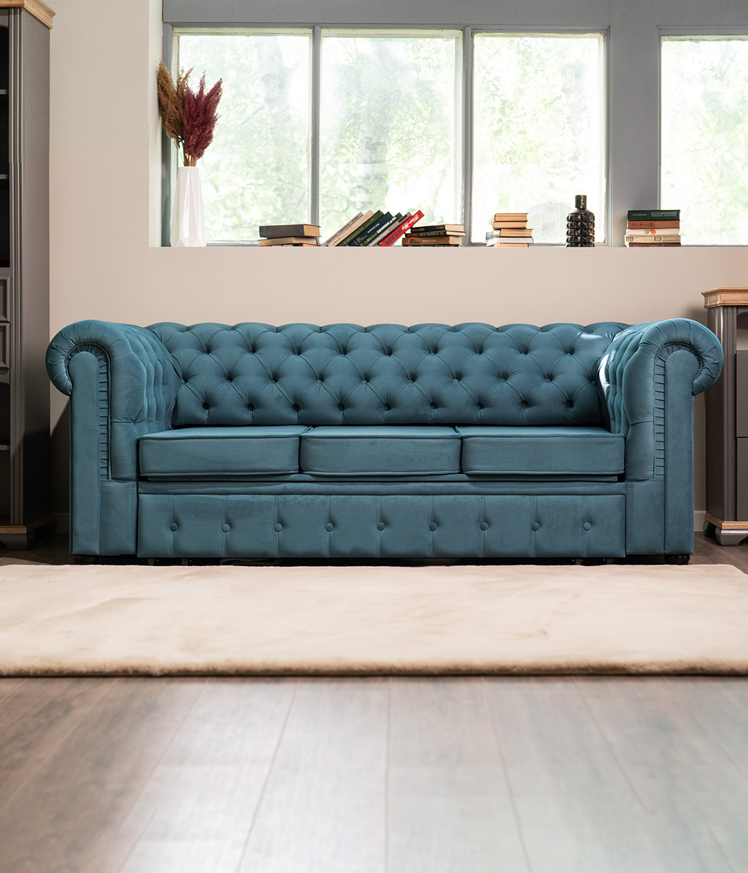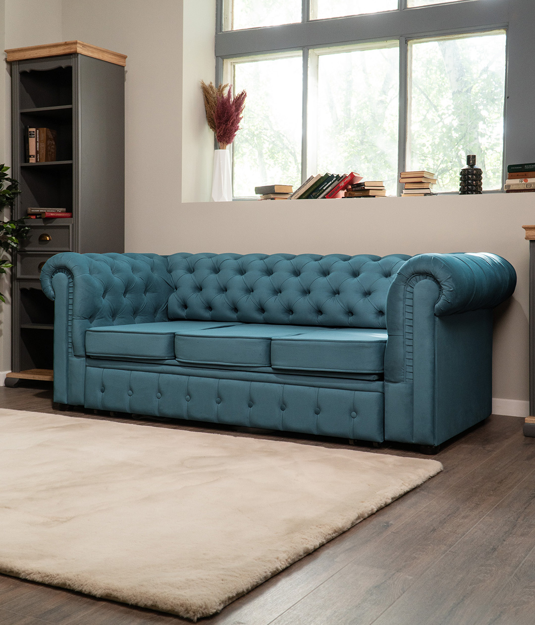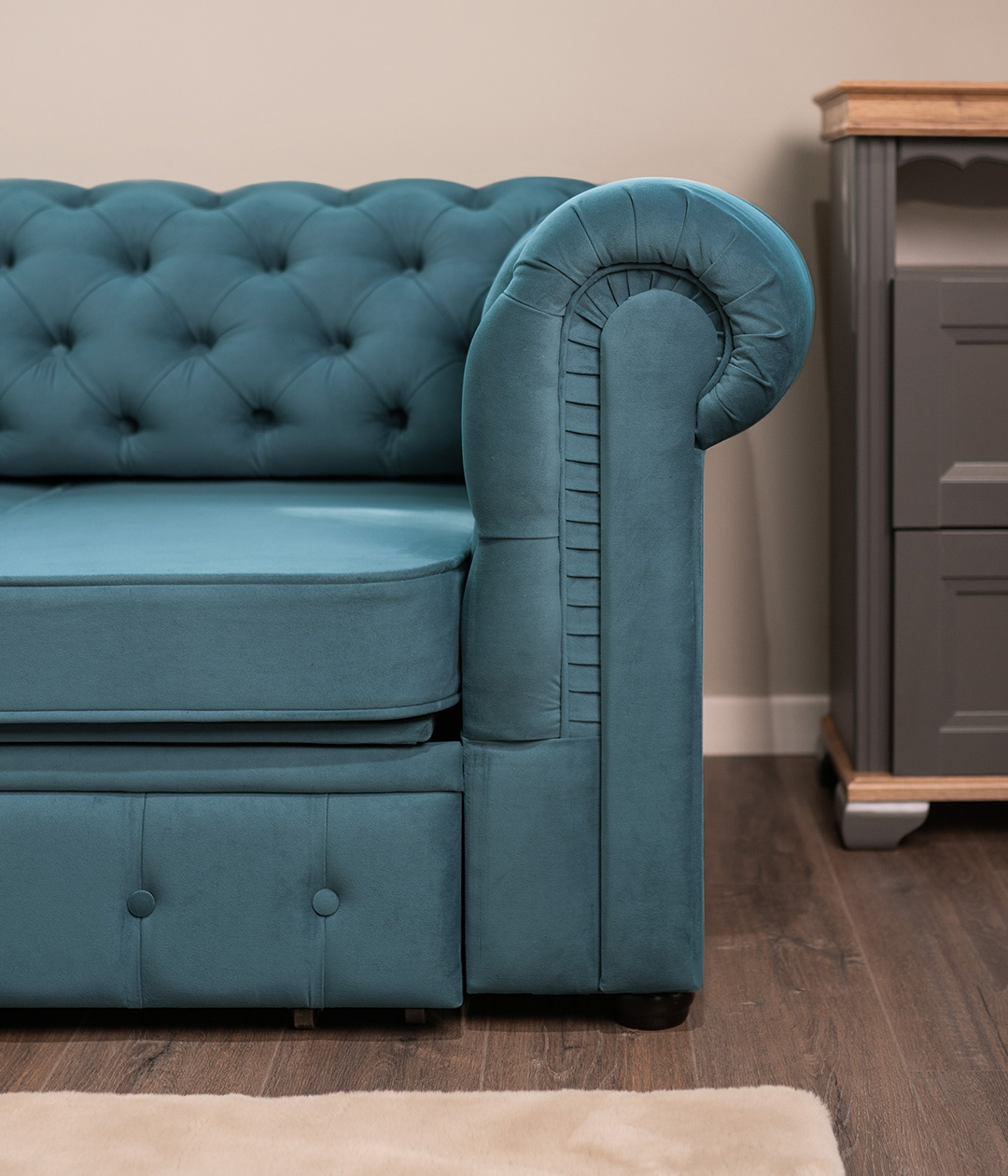 Диван Честер в стиле современной классики станет ярким акцентом любого интерьера. Высокие подлокотники и спинка, украшенные каретной стяжкой, придают ему утонченный и элегантный вид. Глубокая посадка обеспечивает максимальный комфорт для отдыха, а продуманный дизайн делает диван Честер не только функциональным, но и эффектным элементом обстановки. Идеальное сочетание стиля и удобства для вашего дома.