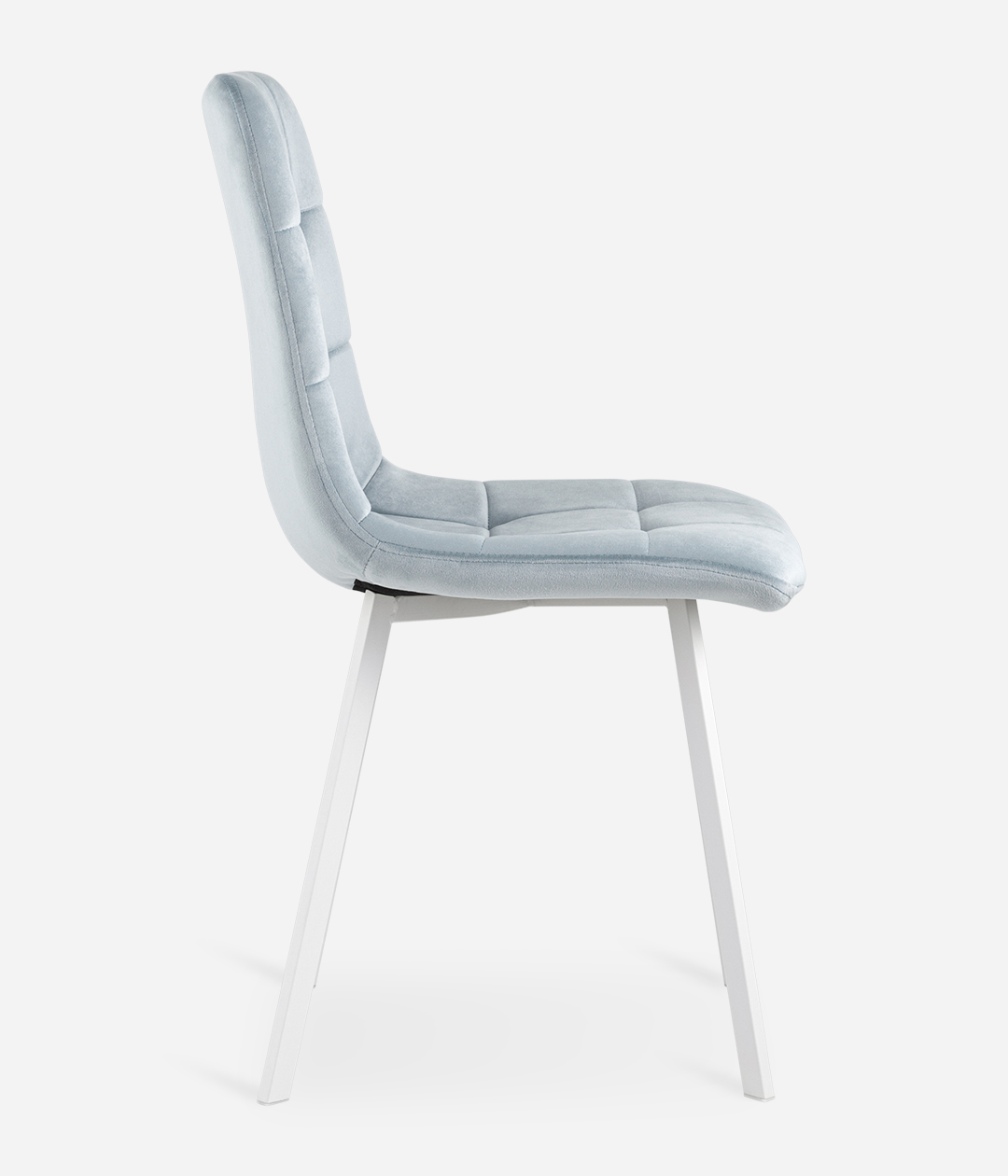 Классический стул в мягкой обивке из велюра без подлокотников. Анатомическая форма сиденья обеспечивает удобство, а декоративная стяжка придает объём и защищает от образования вмятин. Металлические ножки выдерживают значительные нагрузки.