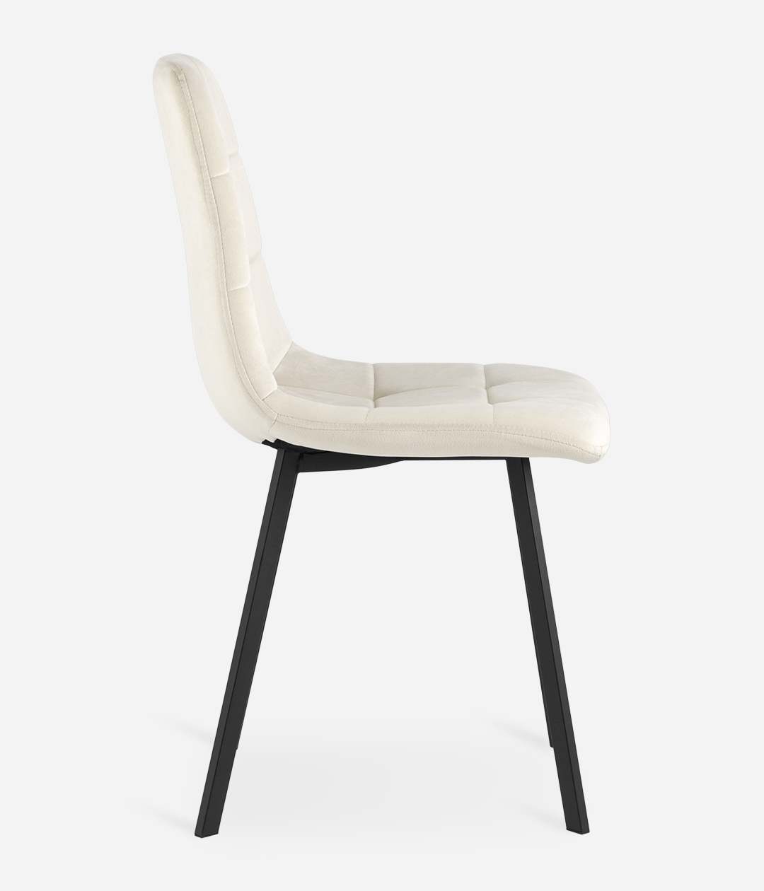 Классический стул в мягкой обивке из велюра без подлокотников. Анатомическая форма сиденья обеспечивает удобство, а декоративная стяжка придает объём и защищает от образования вмятин. Металлические ножки выдерживают значительные нагрузки.