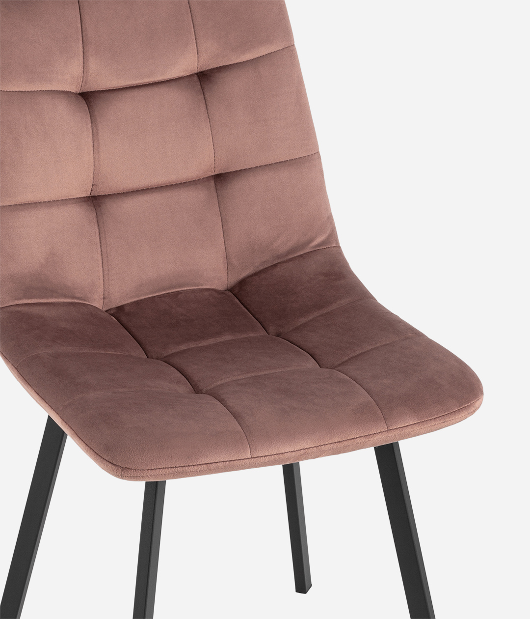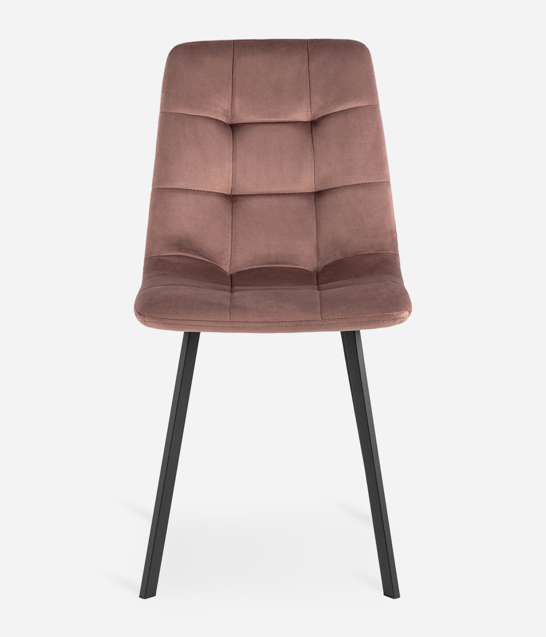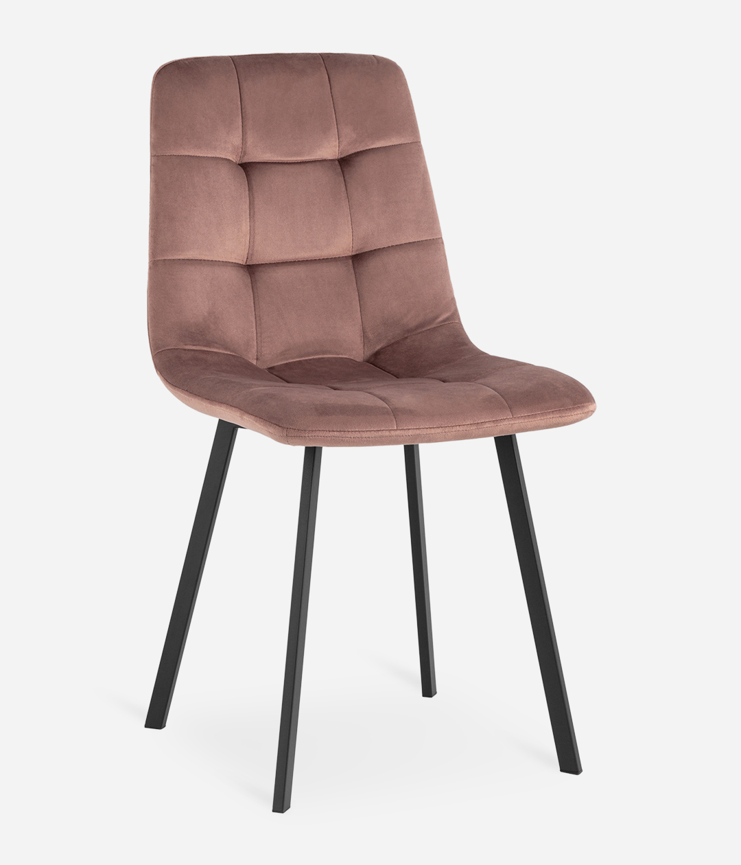 Классический стул в мягкой обивке из велюра без подлокотников. Анатомическая форма сиденья обеспечивает удобство, а декоративная стяжка придает объём и защищает от образования вмятин. Металлические ножки выдерживают значительные нагрузки.