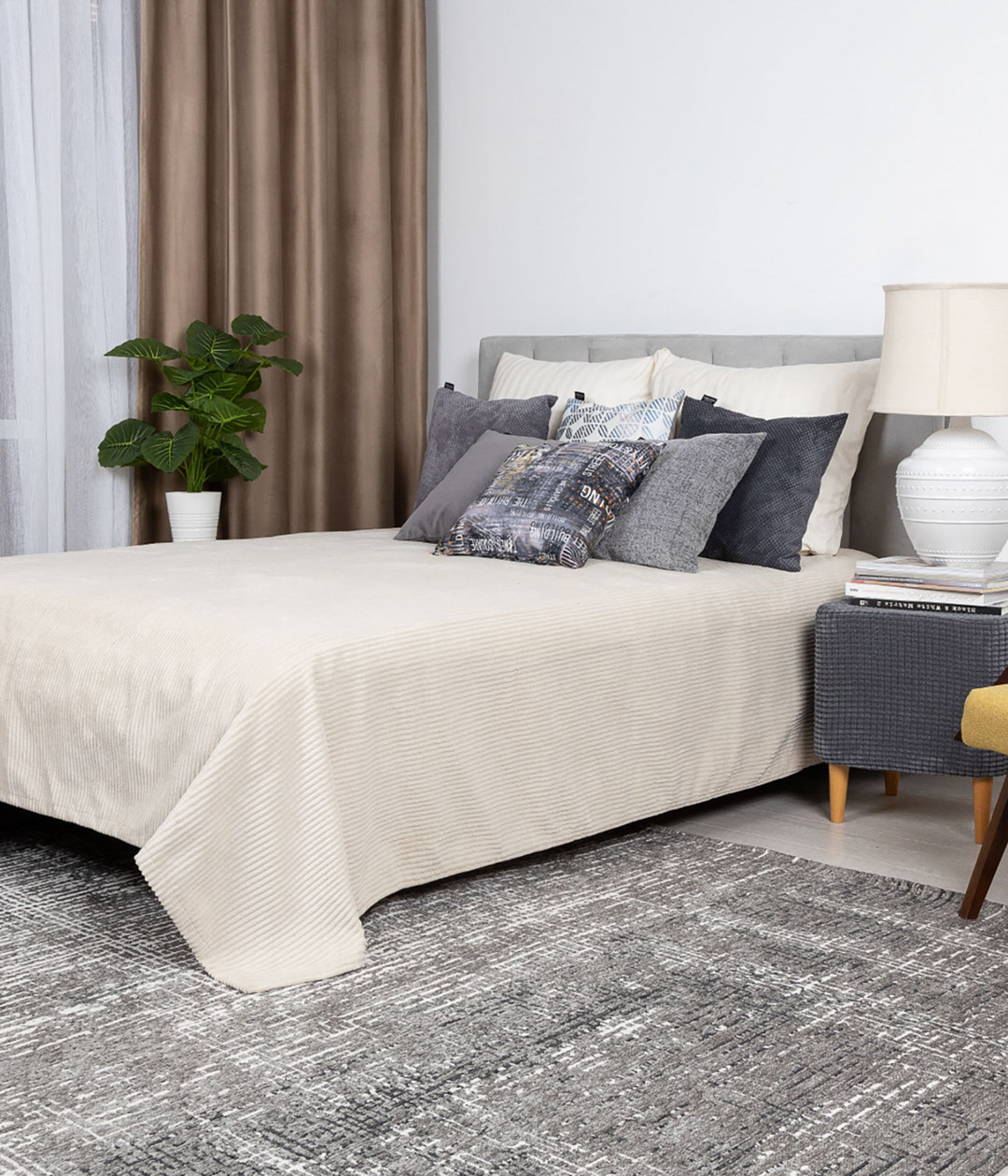 CLEO ROCK – брутальность в модных серых оттенках. Современный городской интерьер идеально дополняется мягкостью и объемностью структурной шенилловой нити. Особенностью ковра CLEO ROCK является его невероятная мягкость в сочетании со строгим брутальным дизайном. Этот простой дизайн соединит в одну историю все предметы интерьера и сделает его более гармоничным.