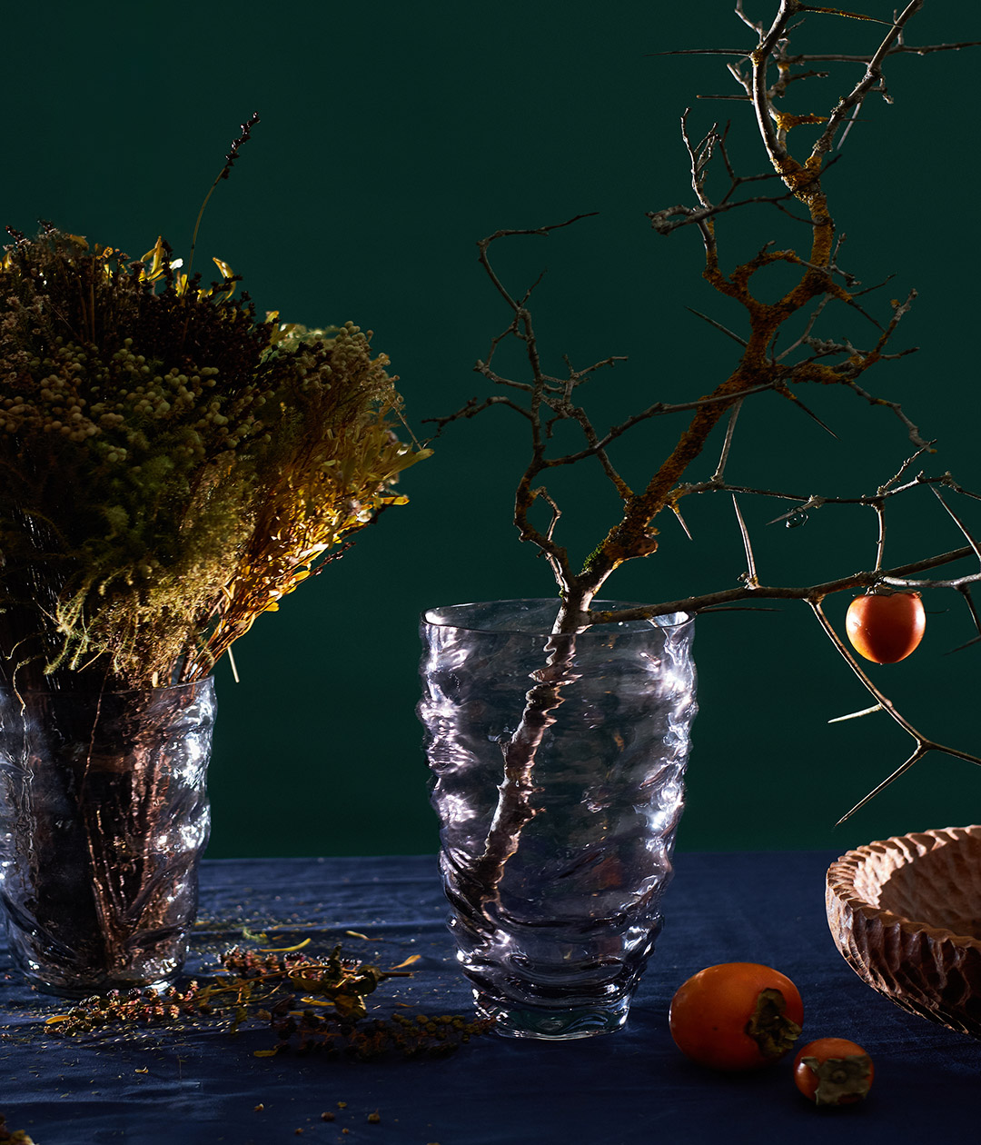 Ваза Crumpl – прекрасный способ придать интерьеру индивидуальность. Ее интересная “мятая” фактура и трендовый оттенок привлекают внимание и великолепно вписываются в различные современные решения.
