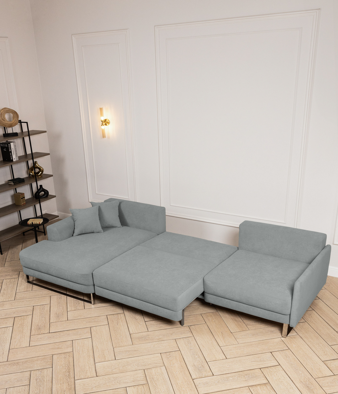 Новый тренд в мягкой мебели. Благодаря высоким ножкам диван выглядит лаконично и элегантно, придавая интерьеру лёгкость и уют. Кроме того, такая конструкция упрощает уборку под диваном.