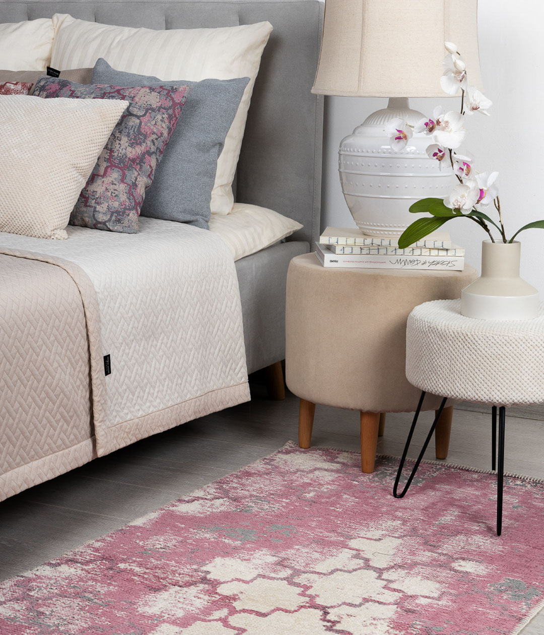 Красивый орнамент ковра DUAL AMARIS привлекает внимание своей воздушностью, а переходы цвета оживляют его. Ковер очень мягкий и уютный, а самое главное – двусторонний. Сохраняя рисунок и эффект состаренности, стороны отличаются насыщенностью и количеством ведущих тонов – серого и розового. Подчеркивает «этническую» нотку легкая бахрома по краю.