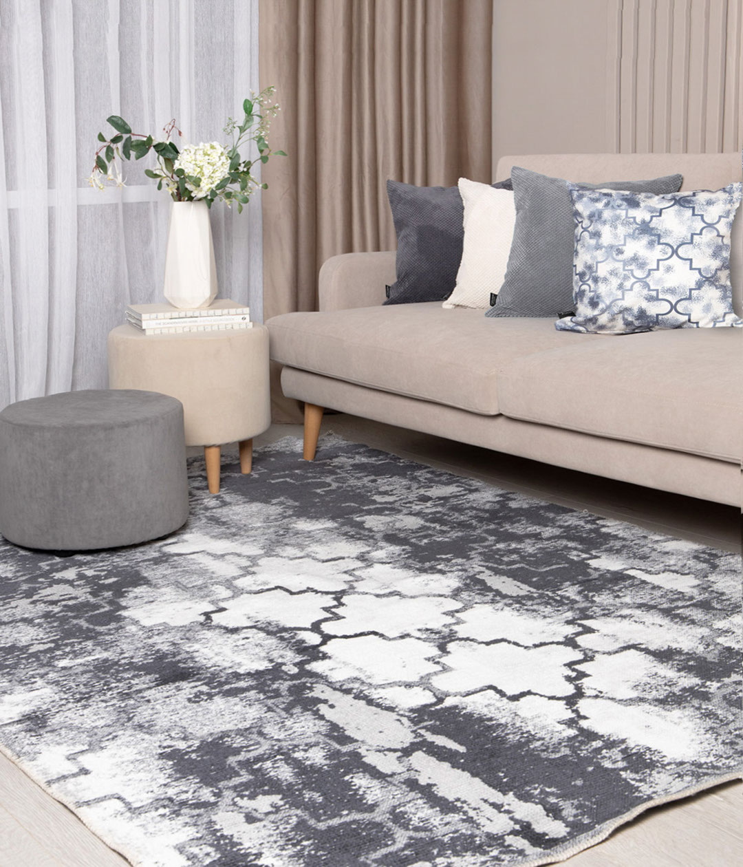 Стильный и современный ковер DUAL MONE создаст ощущение цельности и завершенности как в классических, так и современных интерьерах. Необычная расцветка и плотная, но мягкая фактура делают его выразительным дополнением любой комнаты.