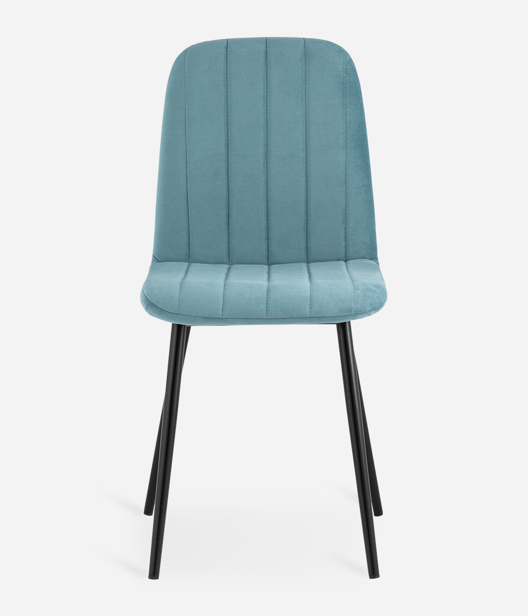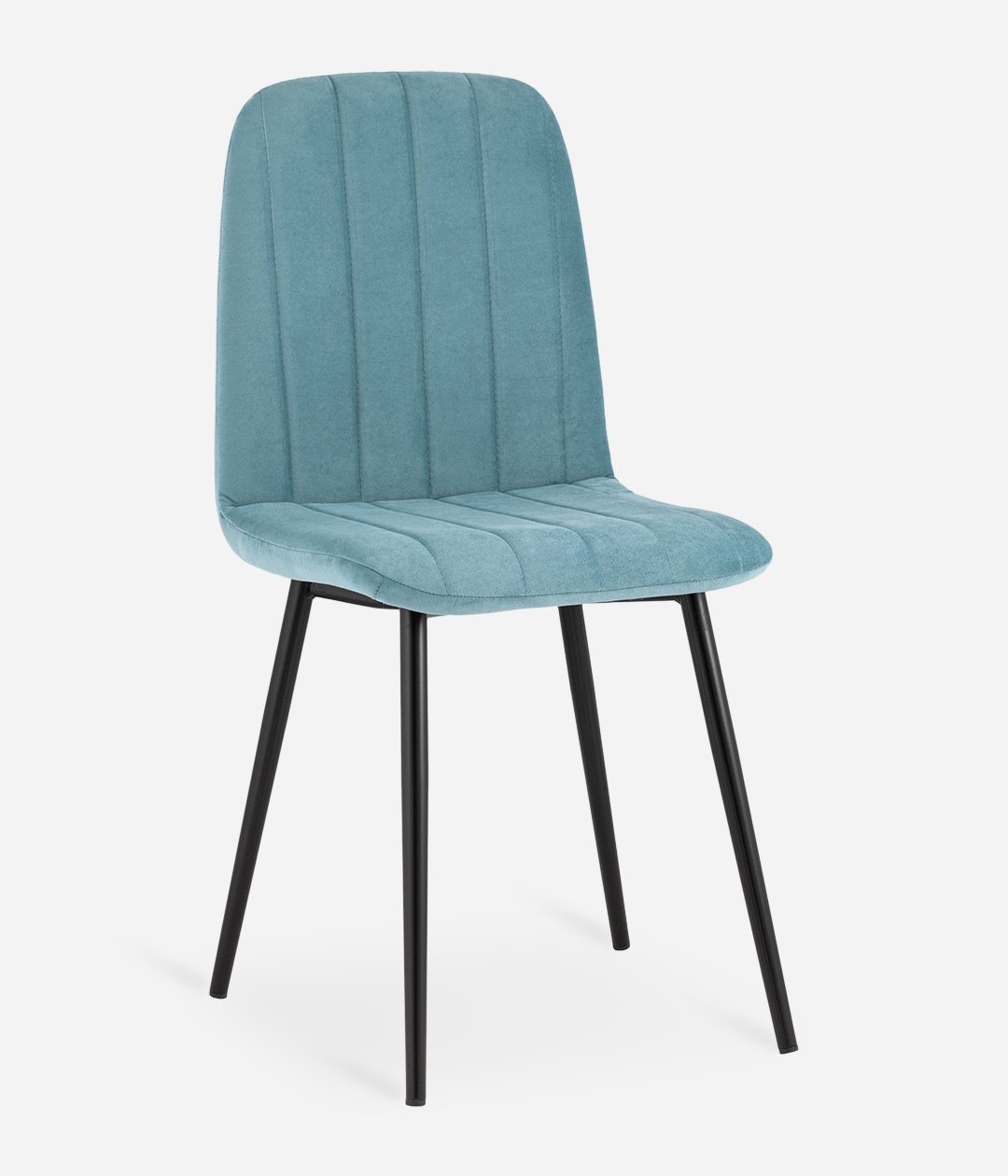 Классический обеденный стул без подлокотников на металлическом каркасе.