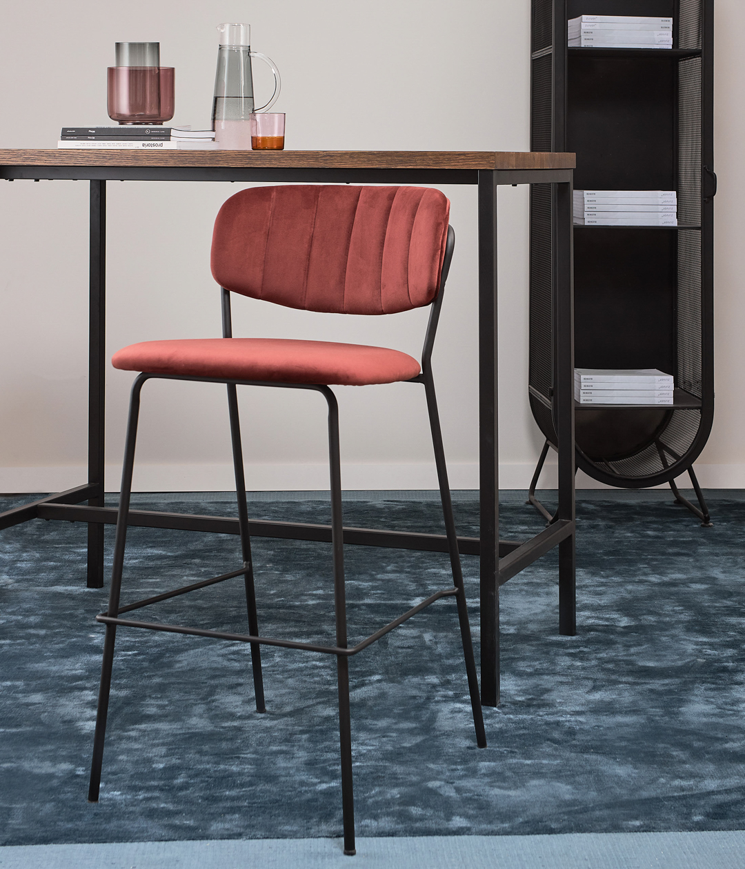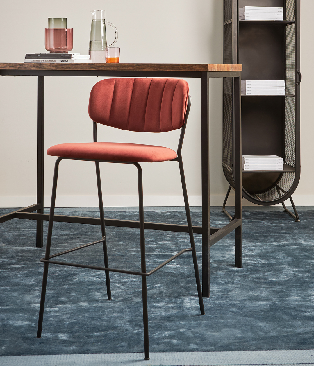 Стул барный Eirill с обивкой из бархатистого велюра смотрится стильно и благородно. Плавные формы и декоративная строчка делают дизайн элегантным.