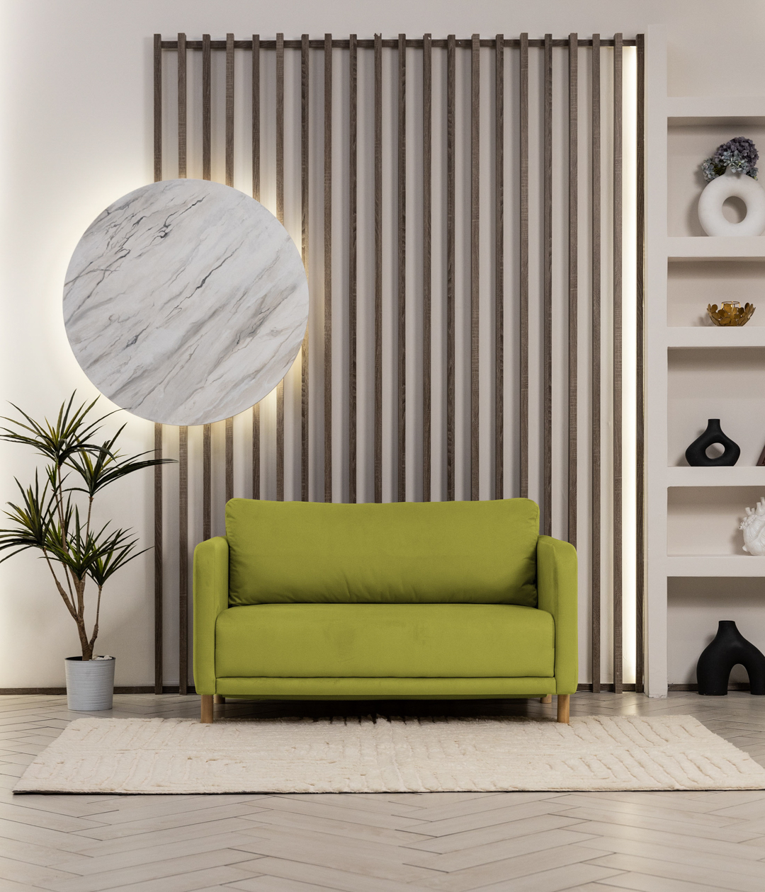 Диван Элим станет идеальным выбором для ценителей сочетания комфорта и элегантности, сохраняя при этом практичность. Его компактный размер позволяет идеально вписать его в небольшие пространства, делая его универсальным решением для современных интерьеров. Просторное спальное место, оборудованное независимым пружинным блоком, гарантирует безмятежные ночи.