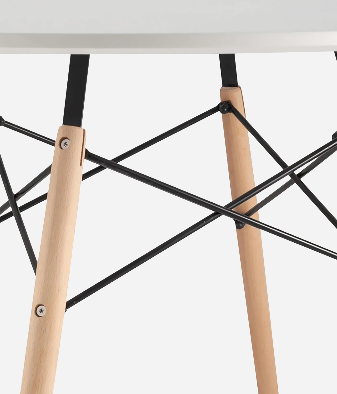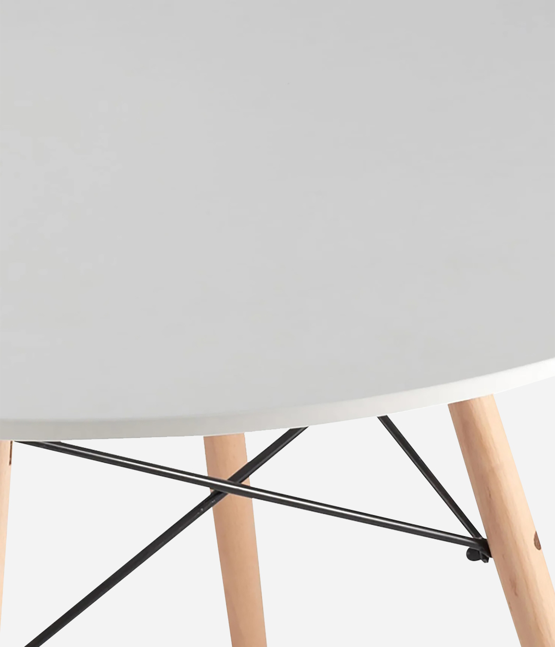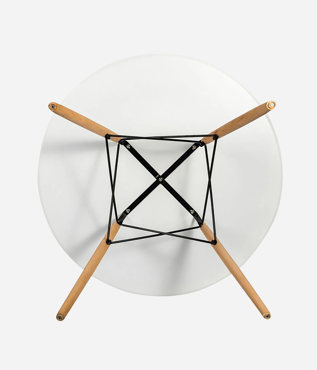 Обеденный стол EAMES — это легендарное творение двух прославленных мастеров Рэй и Чарльза Имз. Круглый стол отлично подойдет для кухни или обеденной зоны. Оригинальные металлические крепления «крест-на-крест» придают деревянным ножкам дополнительную устойчивость и жесткость конструкции. Ножки выполнены из массива бука.