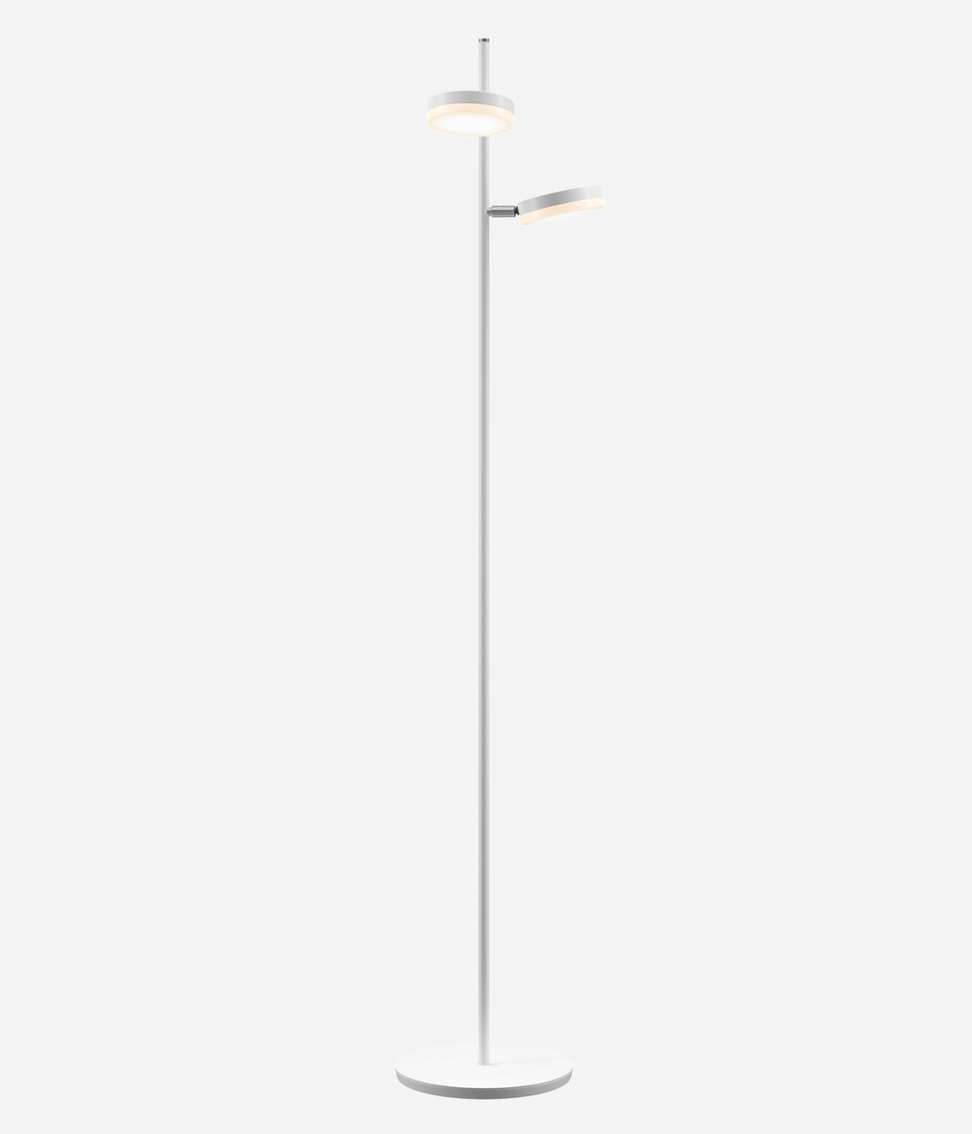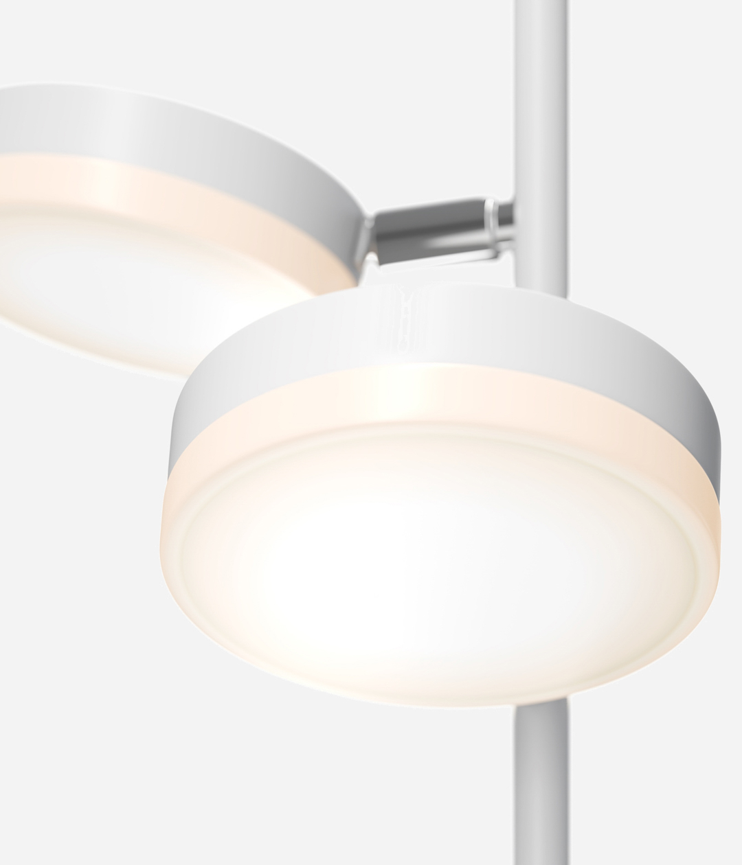 Светильник Fad оснащен двумя плафонами, направленными вниз и поворотными. Это позволяет регулировать направление света в зависимости от потребностей пользователя. Выключатель расположен на корпусе, что обеспечивает удобство использования. Гибкий функционал расширяет возможности для формирования различных сценариев и интуитивного светового зонирования помещения.