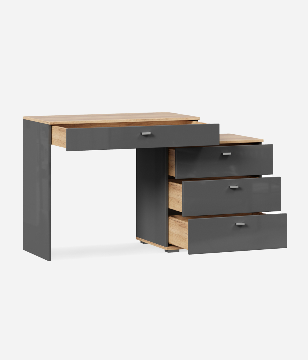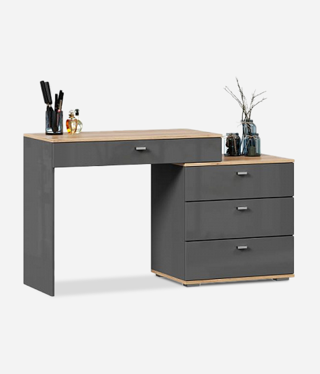 Туалетный столик «Фиджи» с четырьмя ящиками займёт особое место в спальне, выполненной в классическом стиле. Сочетание промышленных цветов и простых форм является главным акцентом дизайна модуля.