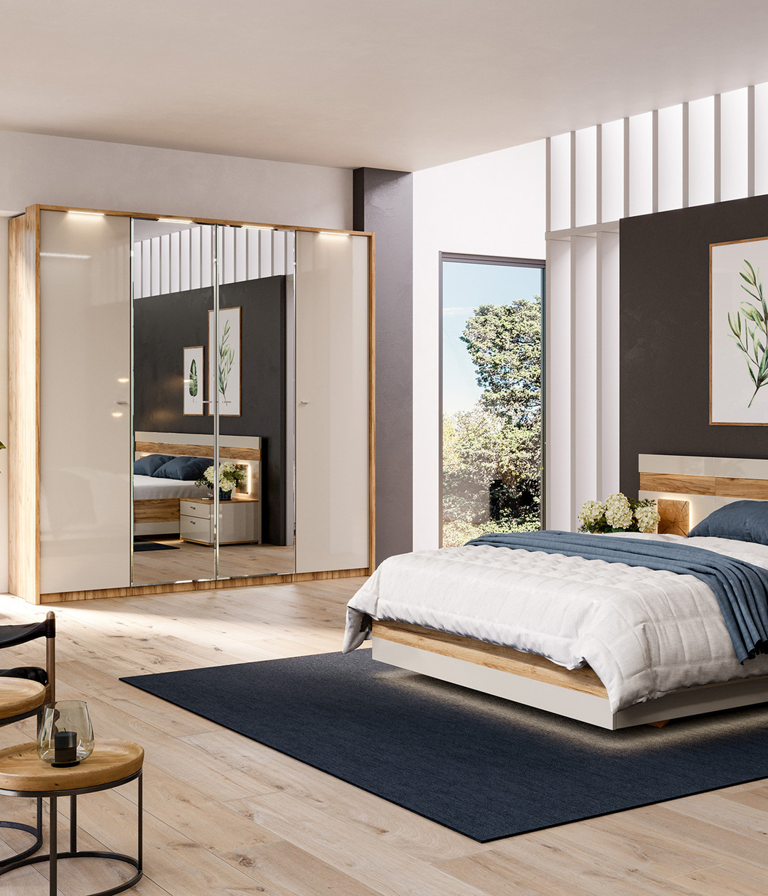 Распашной шкаф Фиджи — модель, в которой удачно сочетаются стильное исполнение и практичный дизайн. Дополнительно можно приобрести подсветку.