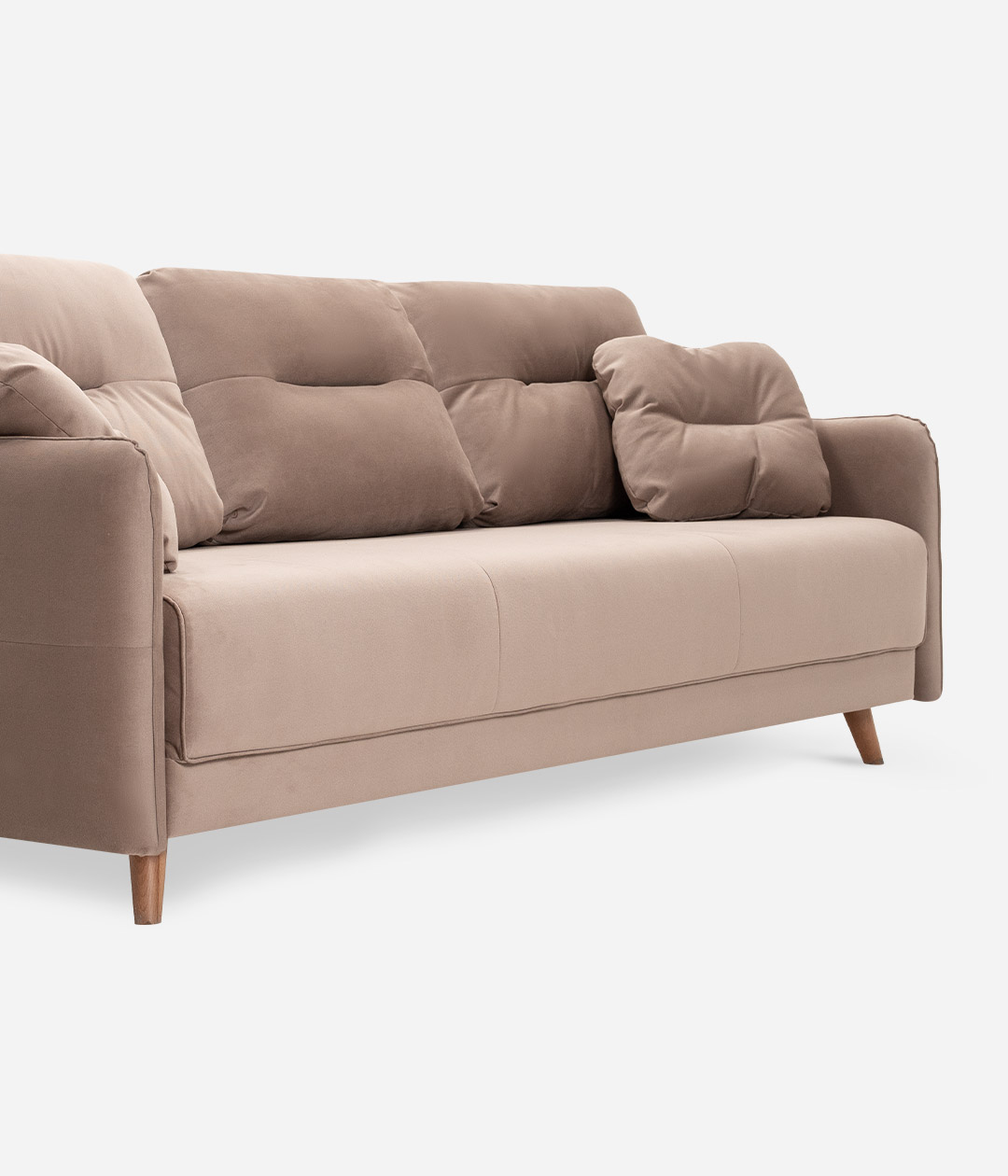 Диван Фишерс в скандинавском стиле — это воплощение природной простоты и лёгкости. Его натуральные материалы и практичность привлекают тех, кто ценит свободу и естественную красоту. Вместительный ящик для белья позволяет поддерживать порядок в комнате, а высокие ножки из дерева добавляют воздушности, подчёркивая натуральность и открывая пространство.
