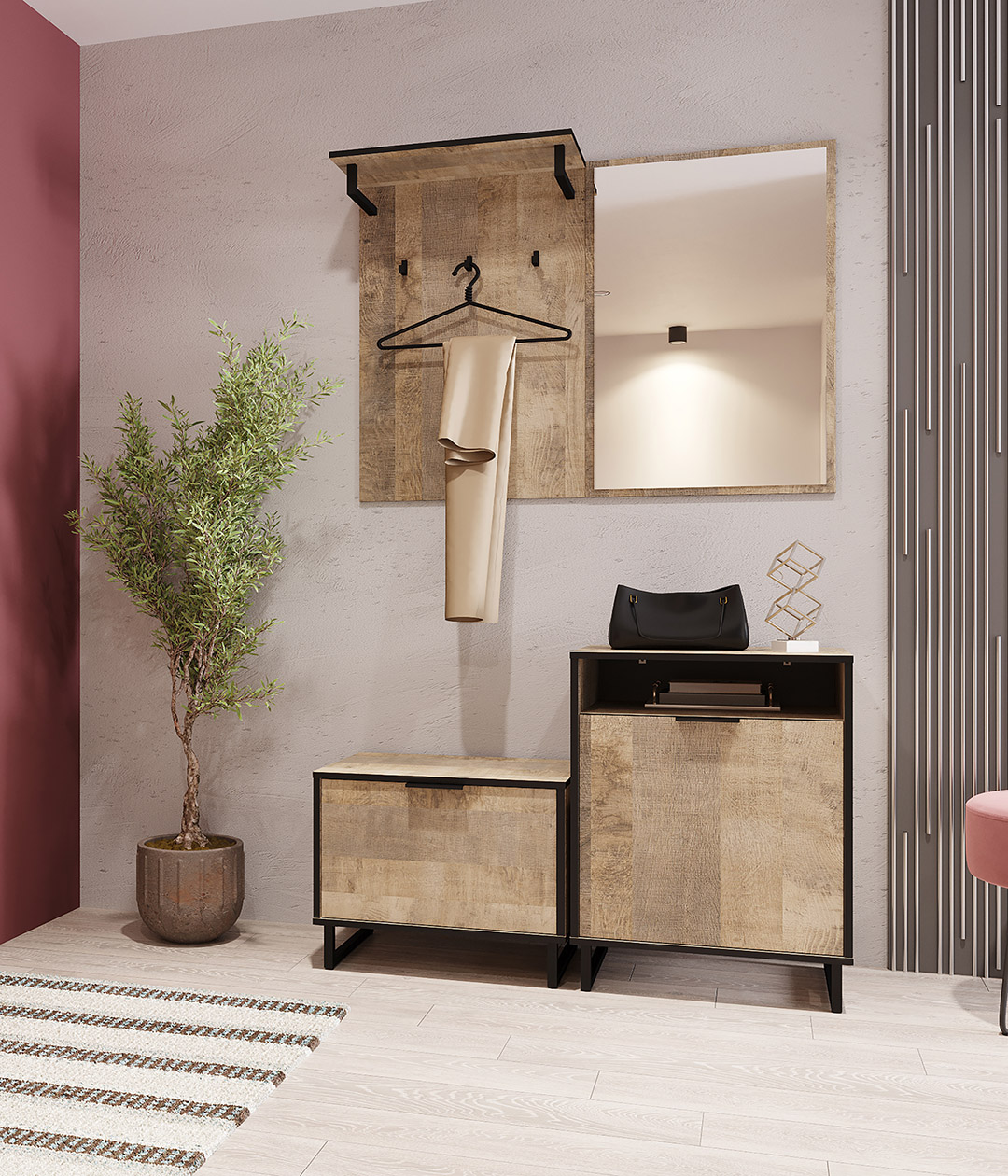 Тумба Фолк с полками украсит любое помещение в стилях лофт и минимализм. Модуль отвечает всем современным требованиям к практичности и функциональности. Храните в нём свои вещи и аксессуары и наслаждайтесь тёплым сочетанием цветов, которое легко задаст тон интерьеру всего дома.