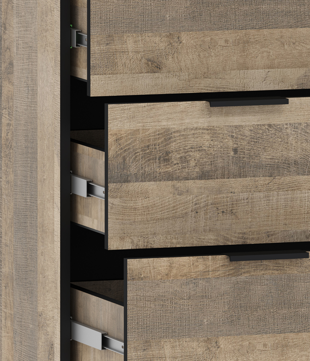 Комод Фолк украсит любое помещение в стилях лофт и минимализм. Модуль отвечает всем современным требованиям к практичности и функциональности. Храните в нём свои вещи и аксессуары и наслаждайтесь теплым сочетанием цветов, которое легко задаст тон интерьеру всего дома.