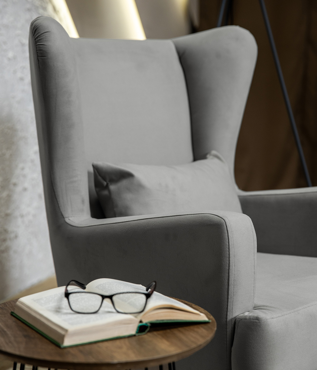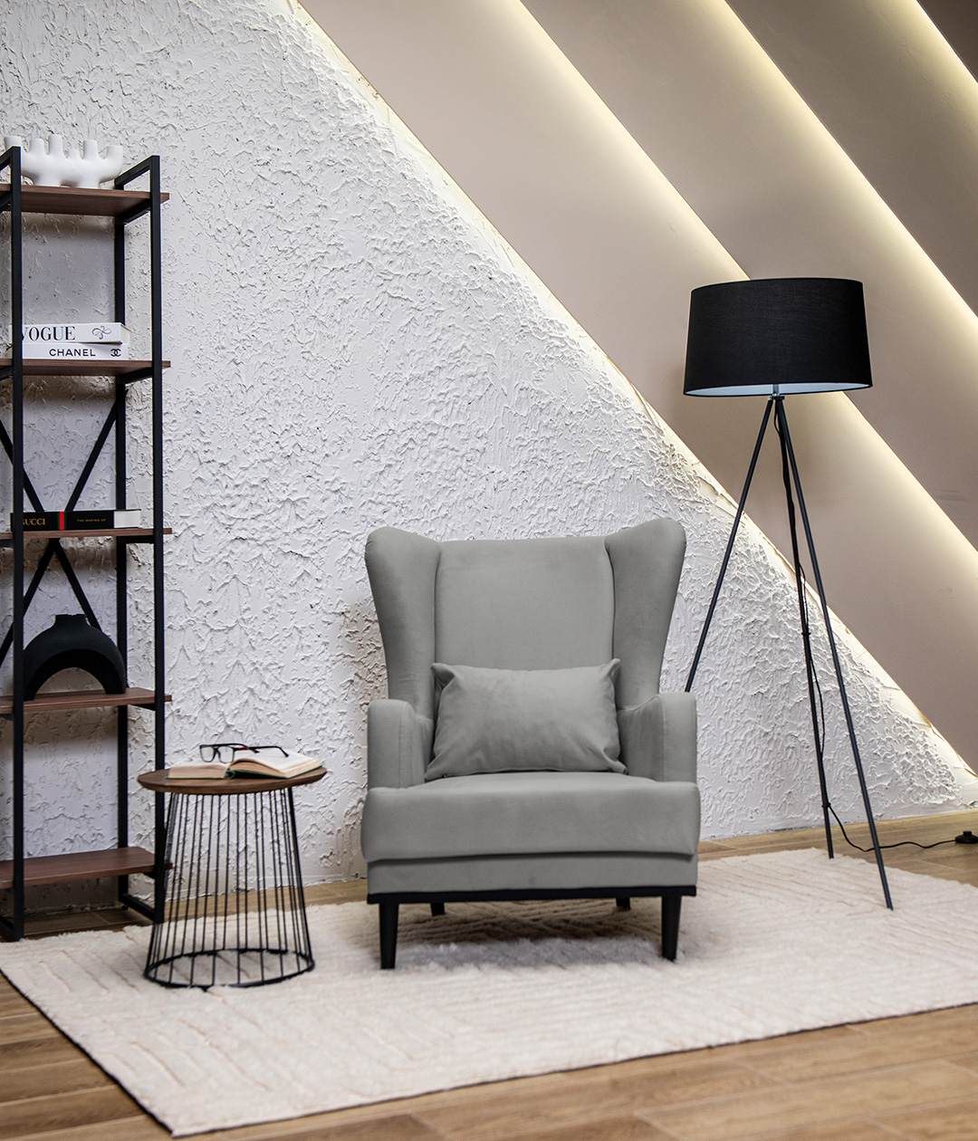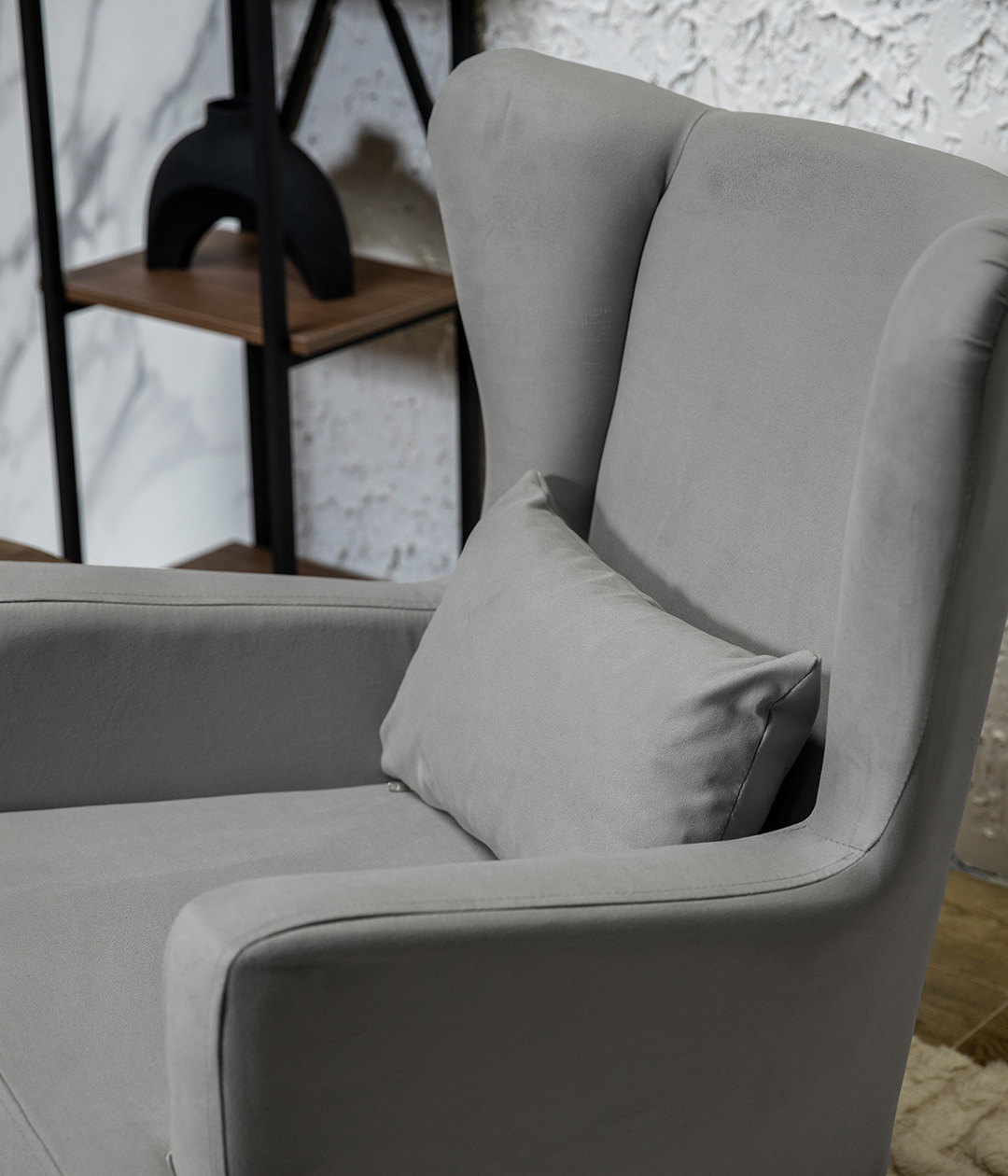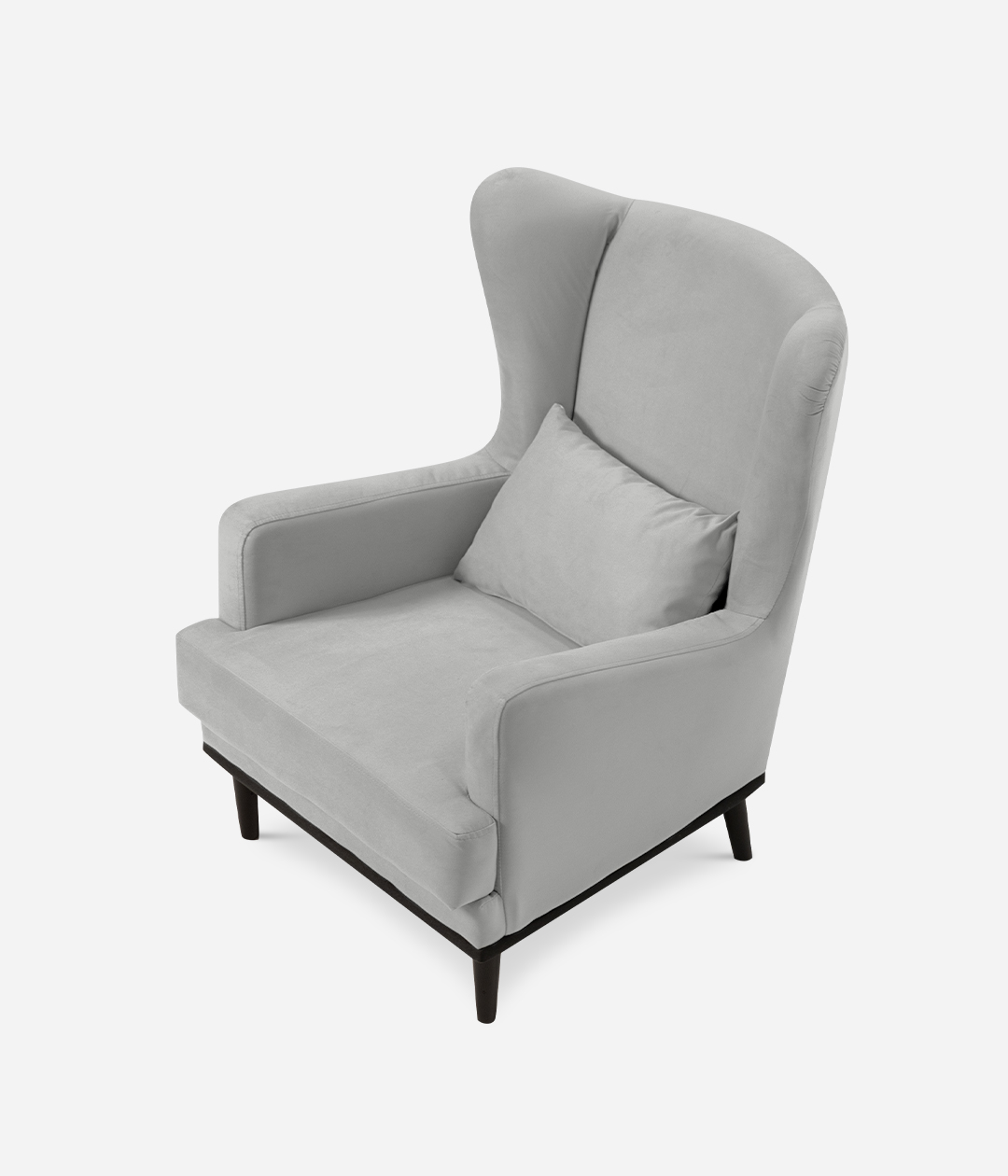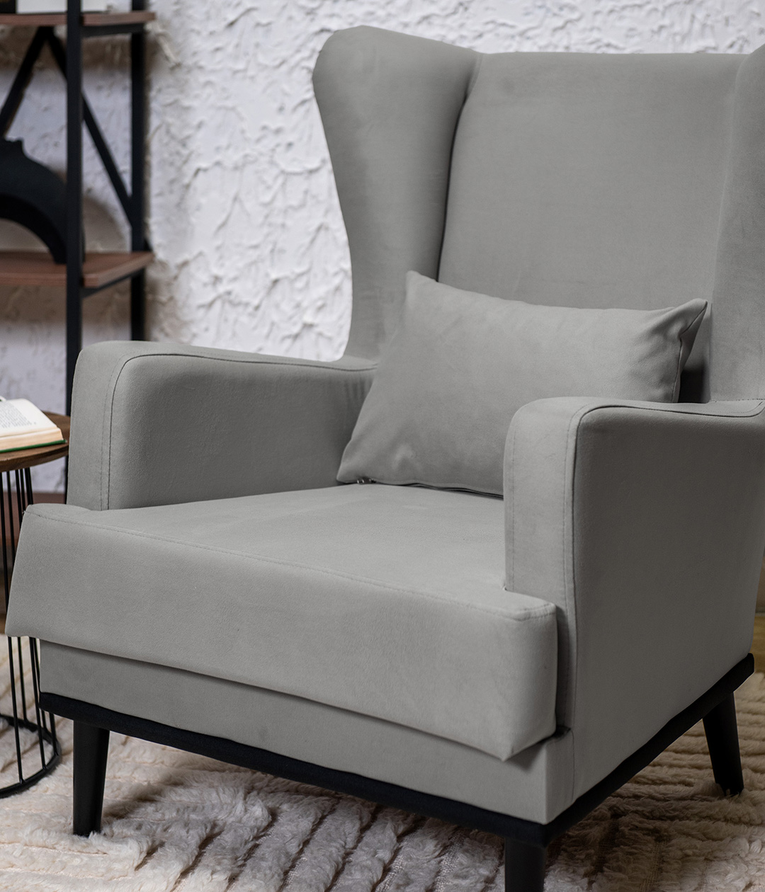 Высокие ножки кресла делают его форму легкой, максимально открывая пространство. К тому же, такая конструкция упрощает уборку, делая доступным напольное покрытие.