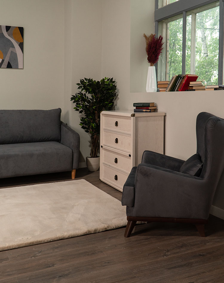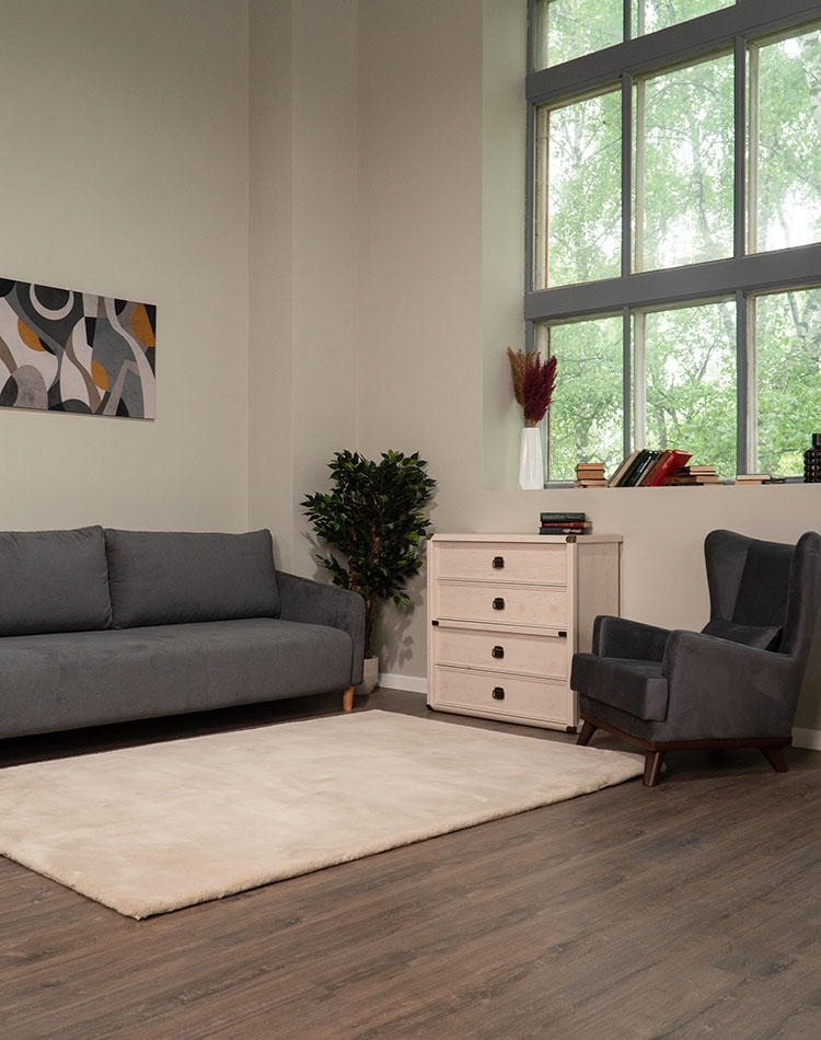 Диван Гримсби, Кресло Хорстен, Комод Мегеллан и ковер Rabbit
