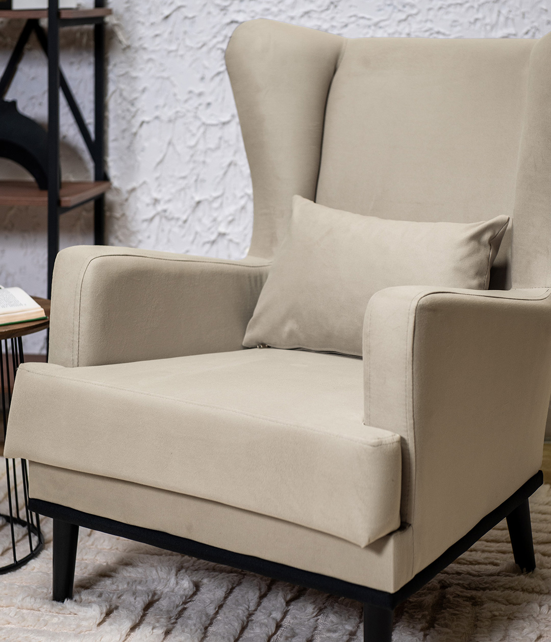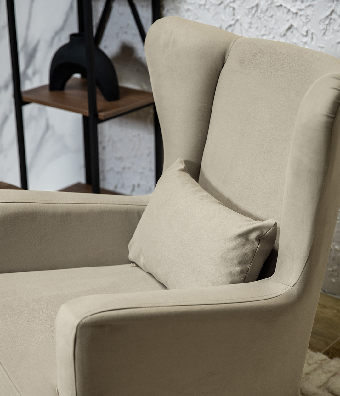 Высокие ножки кресла делают его форму легкой, максимально открывая пространство. К тому же, такая конструкция упрощает уборку, делая доступным напольное покрытие.