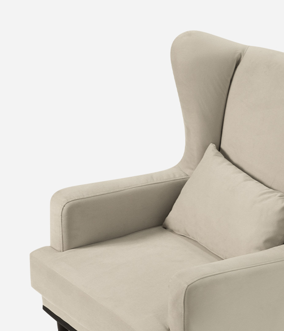 Высокие ножки кресла делают его форму легкой, максимально открывая пространство. К тому же, такая конструкция упрощает уборку, делая доступным напольное покрытие.