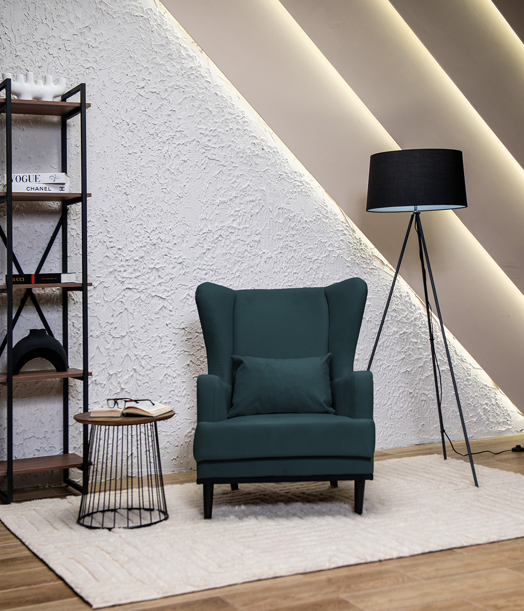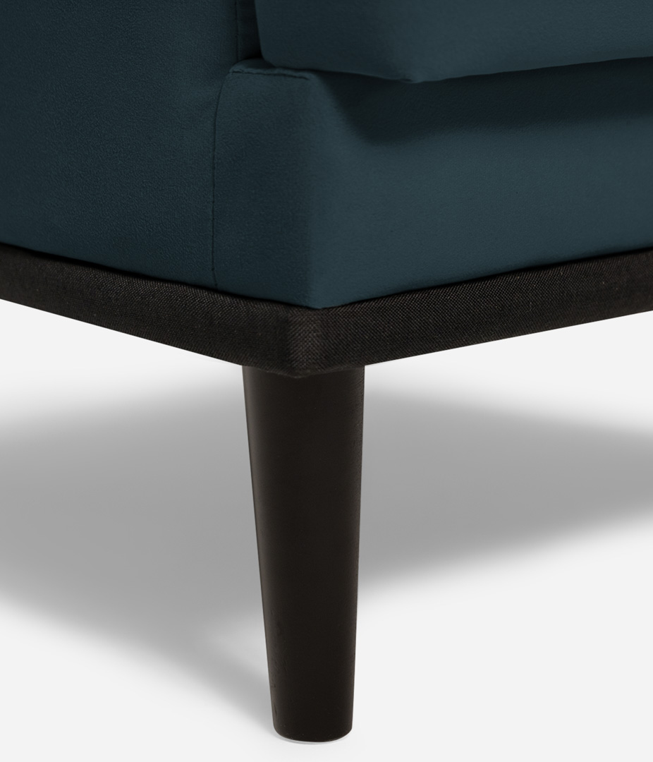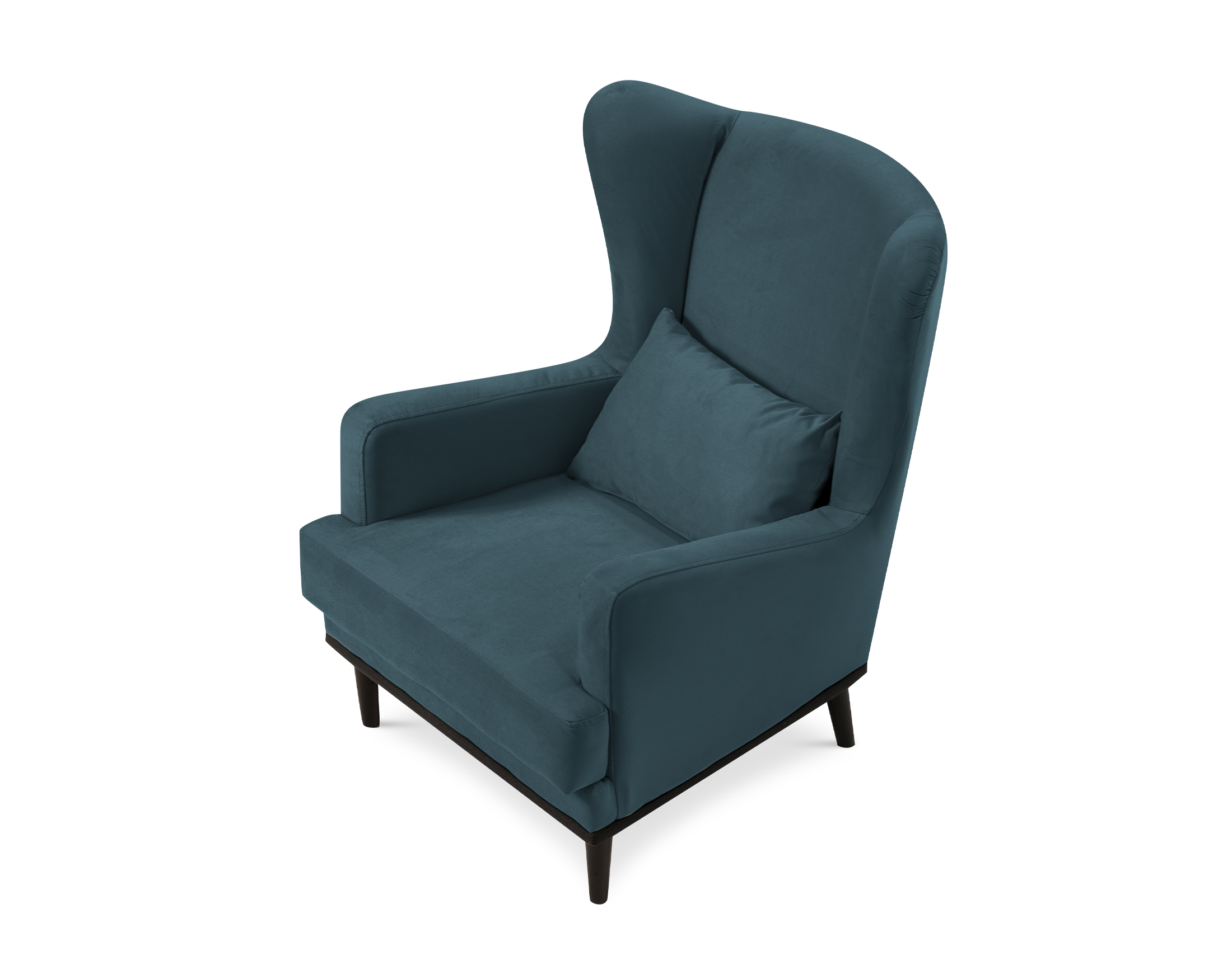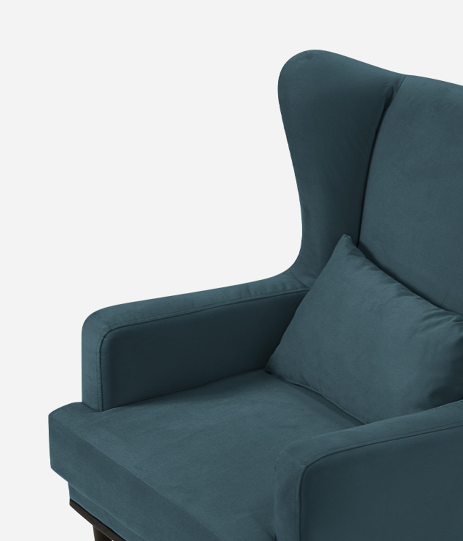 Высокие ножки кресла делают его форму легкой, максимально открывая пространство. К тому же, такая конструкция упрощает уборку, делая доступным напольное покрытие.