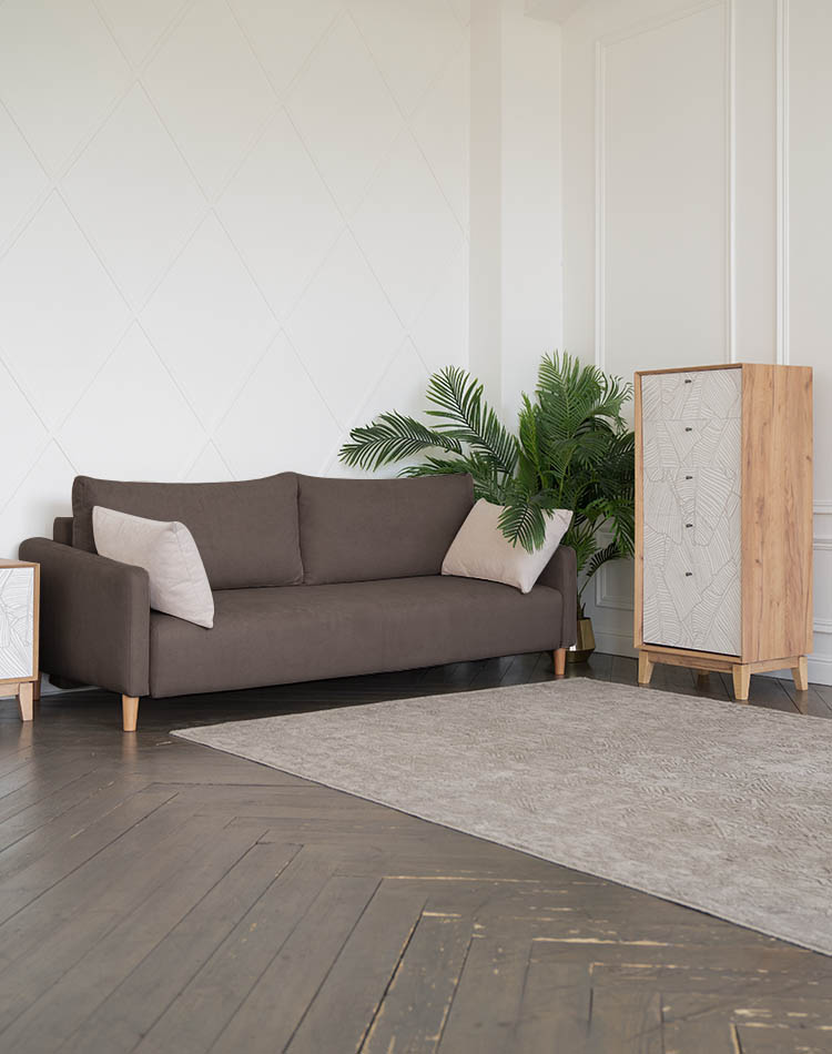Диван Гримсби мини – это воплощение функциональности и стиля в одном. Его минималистичный дизайн и компактные размеры делают его идеальным решением для современных городских апартаментов. Высокие ножки добавят легкости и изящества. Диван просто трансформируется в спальное место одним легким движением, предоставляя полноценное место для сна.