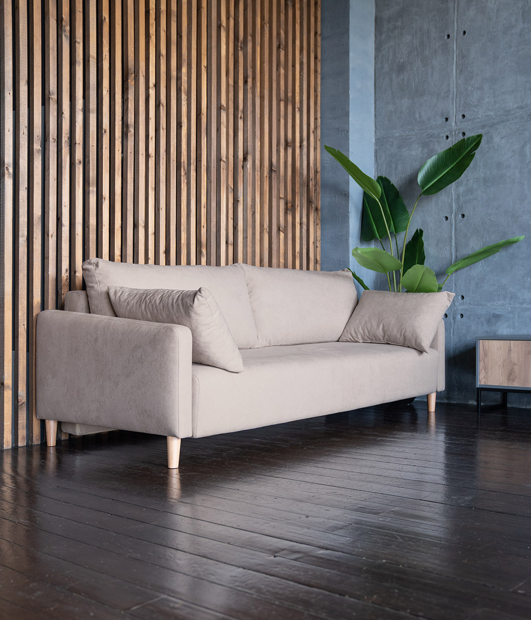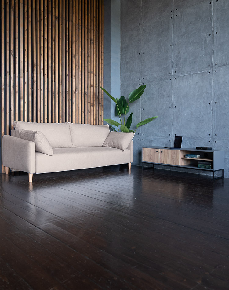 Диван Гримсби Бежевый и ТВ тумба Лофт