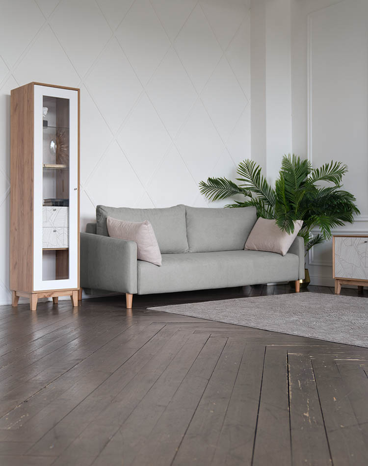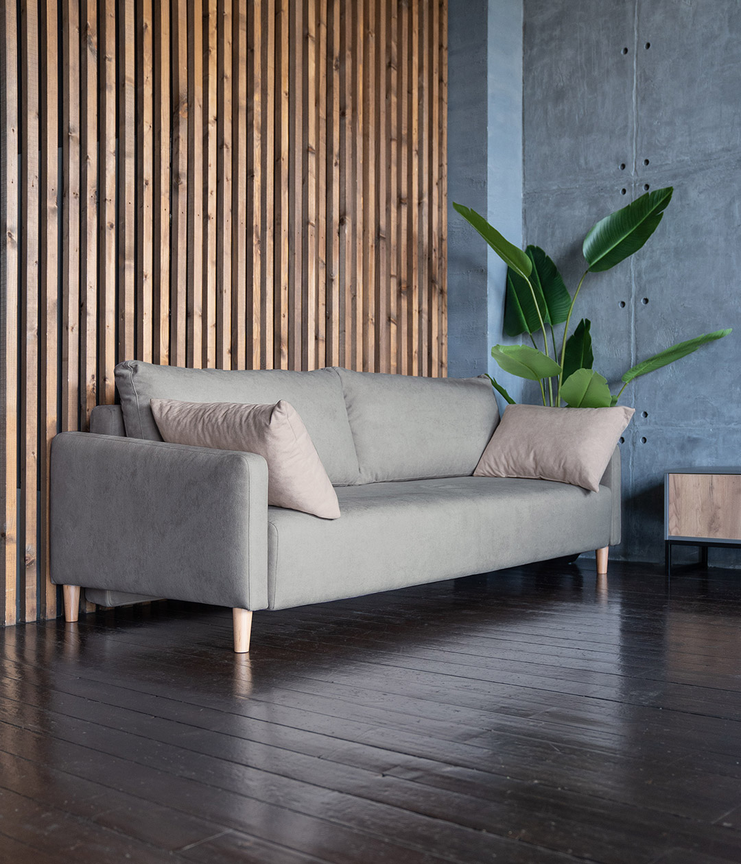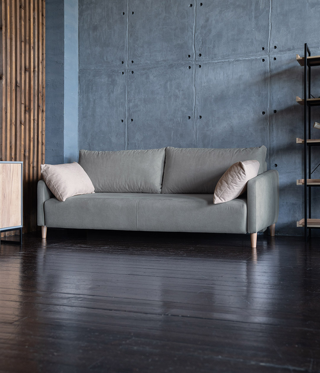 Диван Гримсби – это воплощение функциональности и стиля в одном. Его минималистичный дизайн и компактные размеры делают его идеальным решением для современных городских апартаментов. Высокие ножки добавят легкости и изящества. Диван просто трансформируется в спальное место одним легким движением, предоставляя полноценное место для сна.