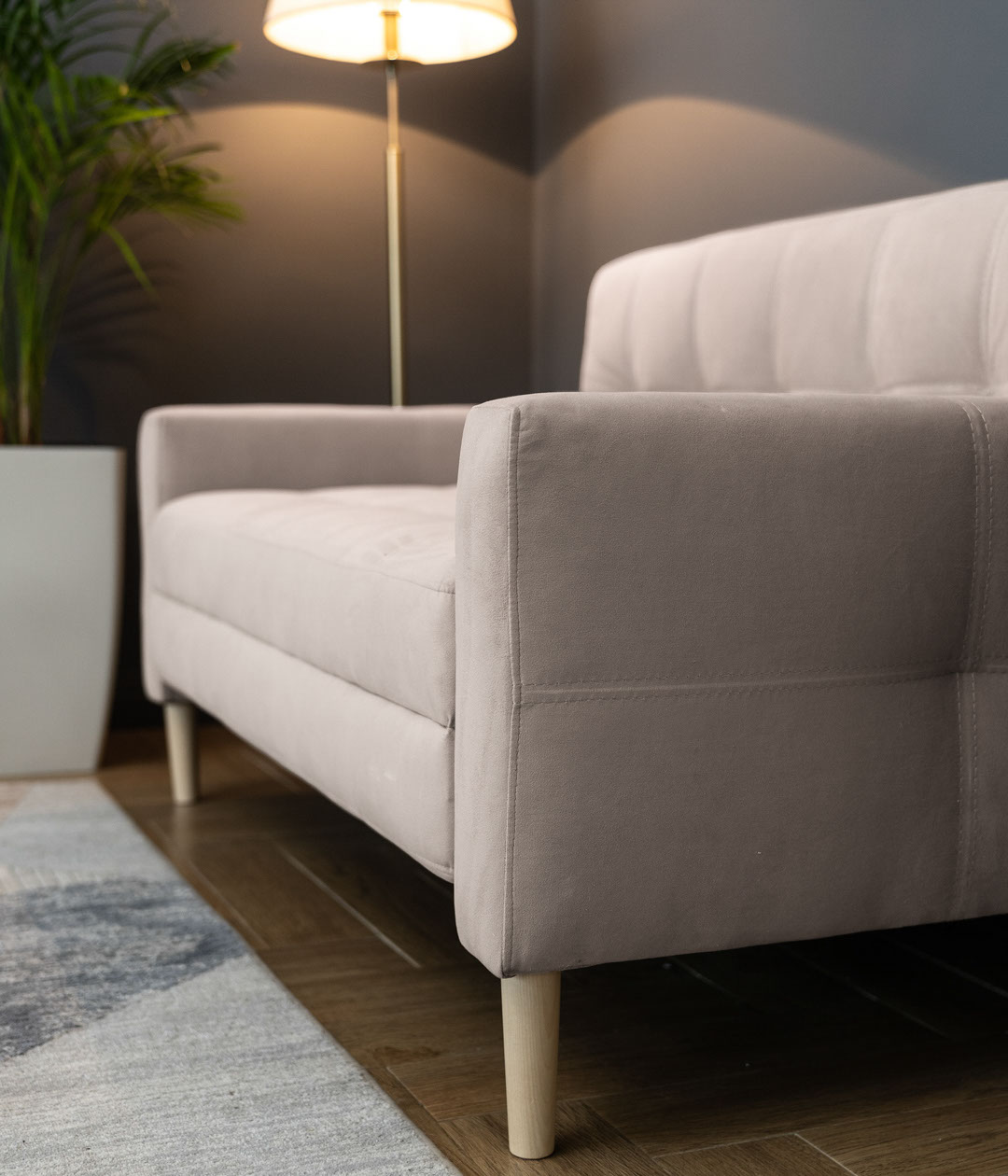 Микровелюр «Велютто» имеет особенно нежную и бархатистую структуру. Ткань устойчива к когтям домашних питомцев и защищает диван от появления затяжек, петель и дыр.