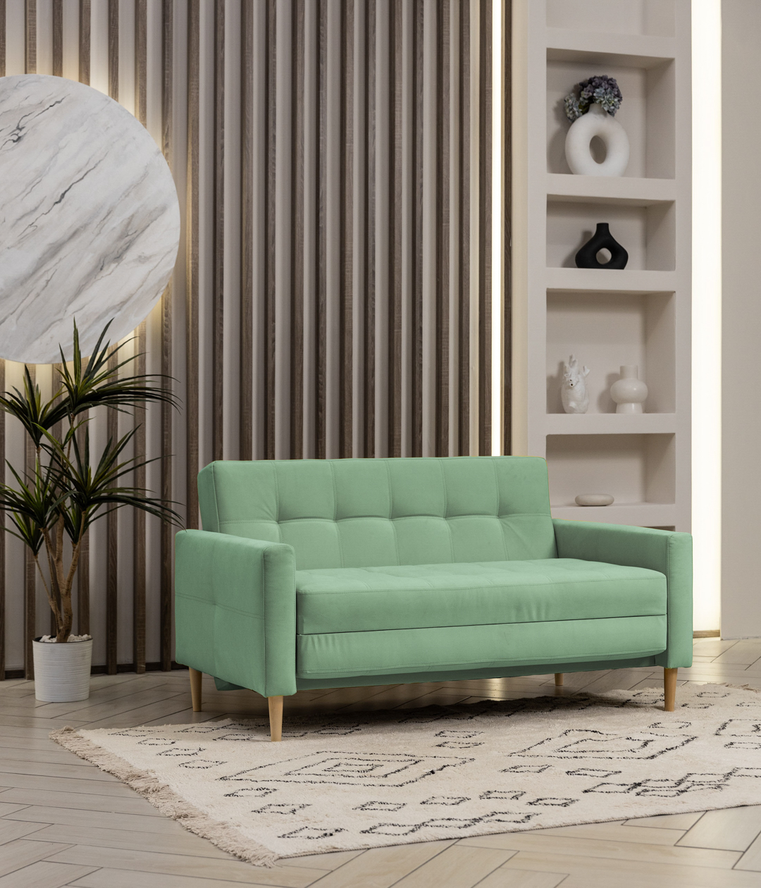 Диван Ирвайн — воплощение эстетики скандинавского стиля, где каждый элемент продуман до мелочей. Его компактный размер идеально вписывается в любое пространство, от маленьких квартир до просторных гостиных. Благодаря лаконичным линиям и минималистичному дизайну, он создает ощущение легкости и простоты, при этом не теряя своей привлекательности.