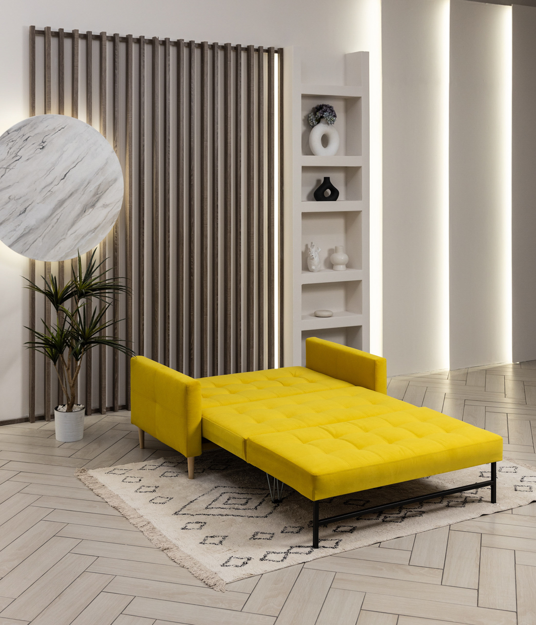 В собранном виде занимает очень маленькую площадь, в разложенном — образует просторное и удобное спальное место. А узкие подлокотники не увеличивают габариты дивана.