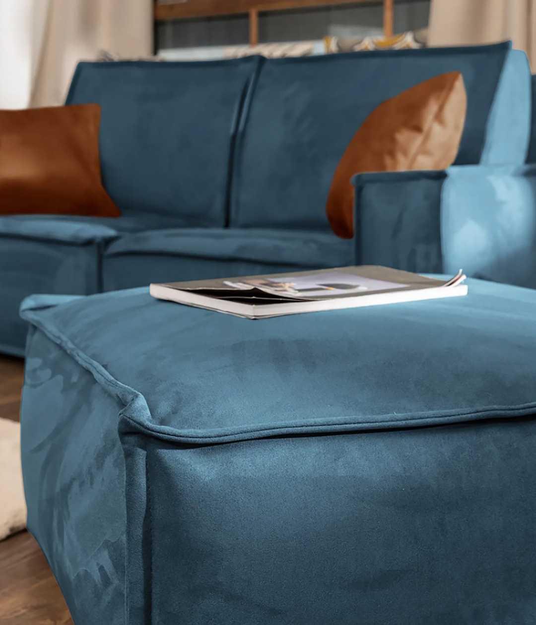 Гостиная Хилтон, диван Кармел мини и пуф Кармел Лазурный