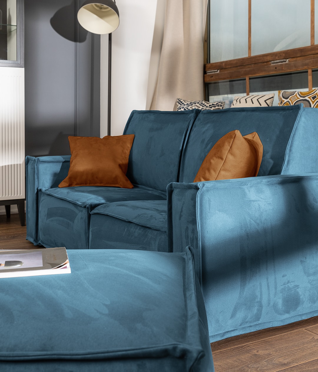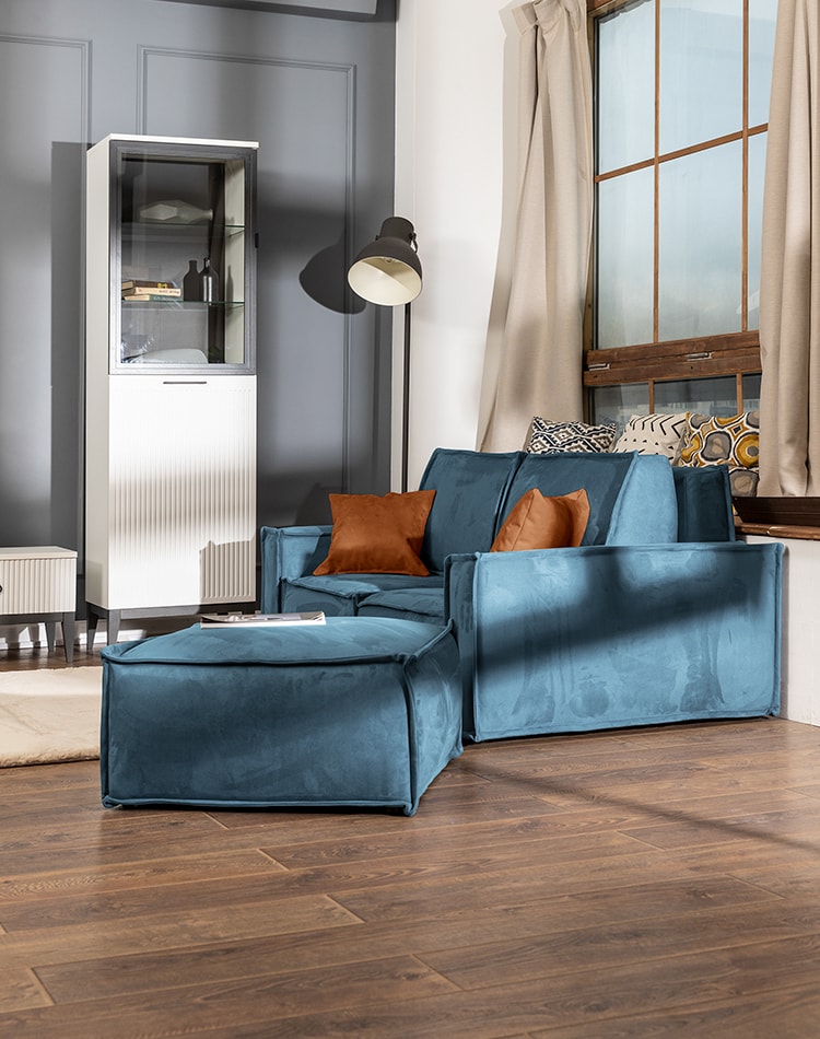 Гостиная Хилтон, диван Кармел мини и пуф Кармел Лазурный