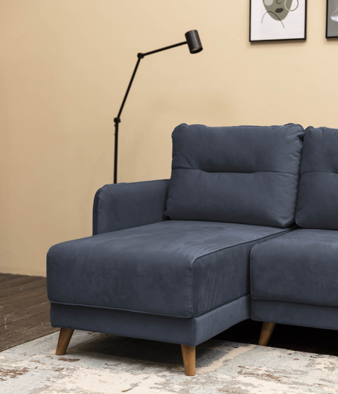 Угловой диван Кэри — идеальный выбор для ценителей скандинавского стиля, где сочетаются натуральность, легкость и практичность. Лаконичный дизайн, высокие деревянные ножки и приятная на ощупь велюровая обивка подчеркивают его элегантность и удобство. Велюр с бархатистой структурой устойчив к когтям домашних питомцев, защищая диван от затяжек и повреждений. Высокие ножки не только облегчают уборку, но и визуально расширяют пространство, а использование натурального дерева придает интерьеру ощущение естественной гармонии.