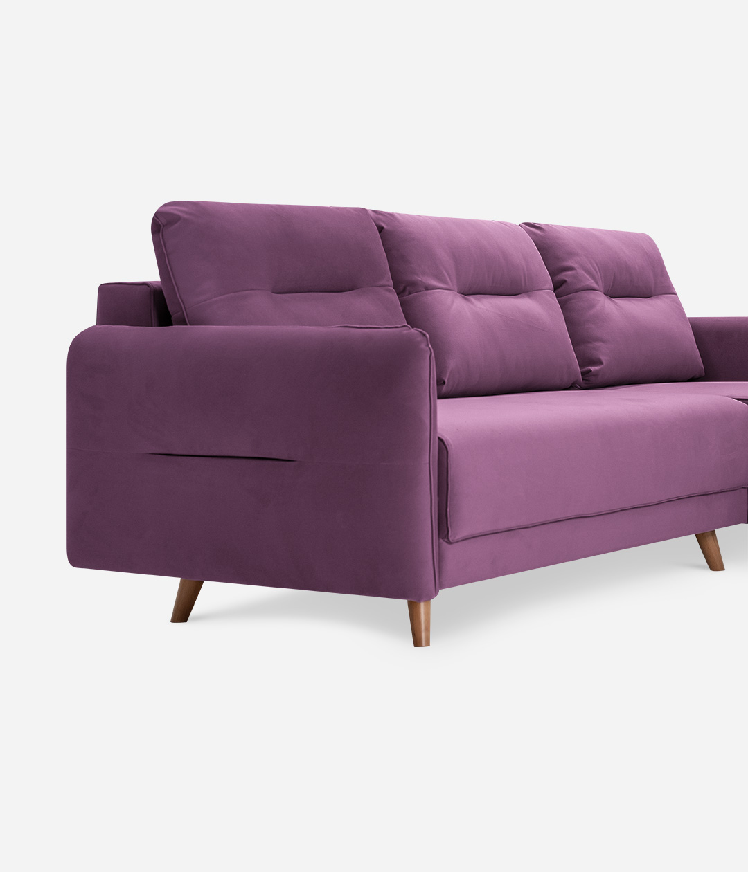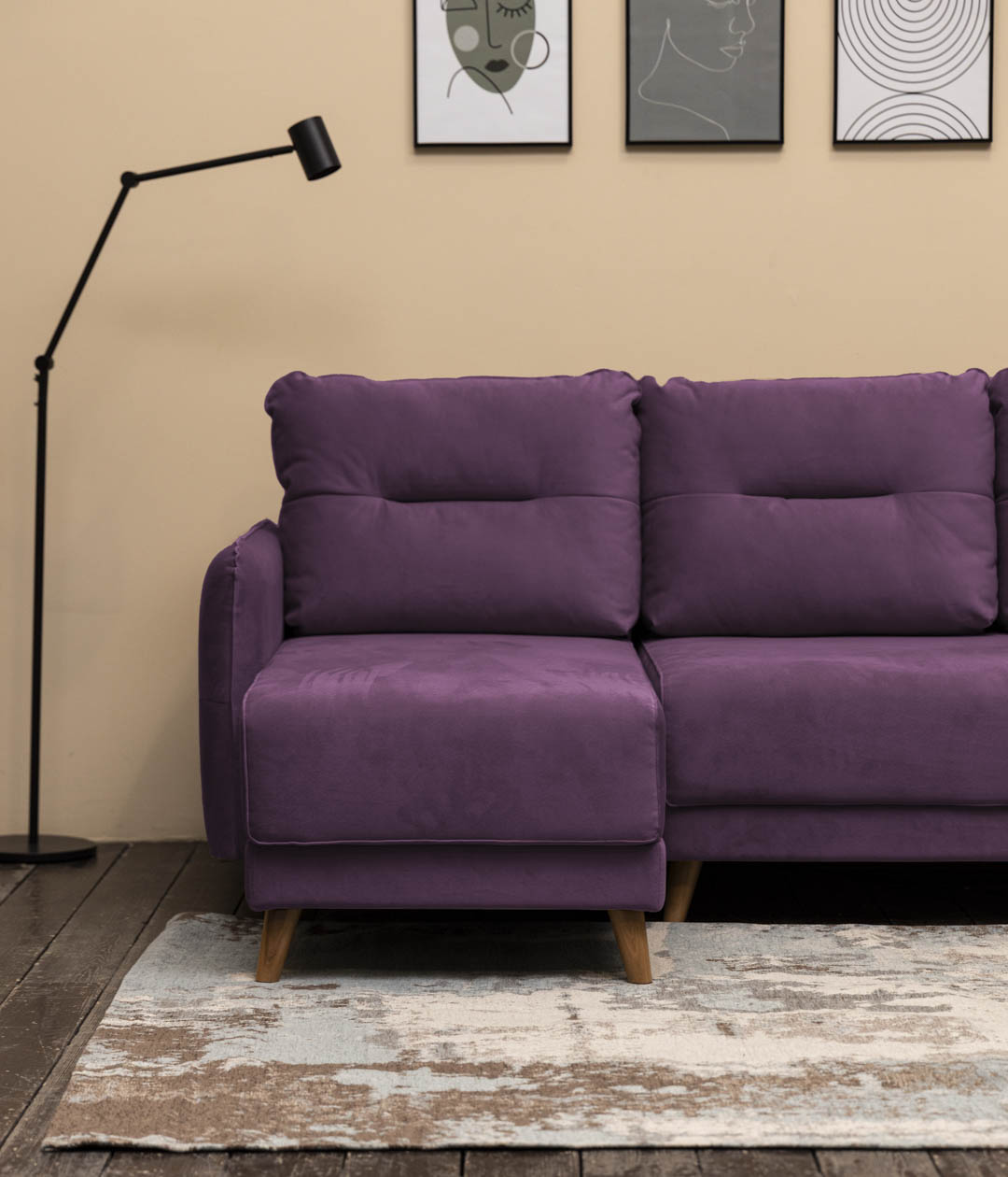 Угловой диван Кэри — идеальный выбор для ценителей скандинавского стиля, где сочетаются натуральность, легкость и практичность. Лаконичный дизайн, высокие деревянные ножки и приятная на ощупь велюровая обивка подчеркивают его элегантность и удобство. Велюр с бархатистой структурой устойчив к когтям домашних питомцев, защищая диван от затяжек и повреждений. Высокие ножки не только облегчают уборку, но и визуально расширяют пространство, а использование натурального дерева придает интерьеру ощущение естественной гармонии.