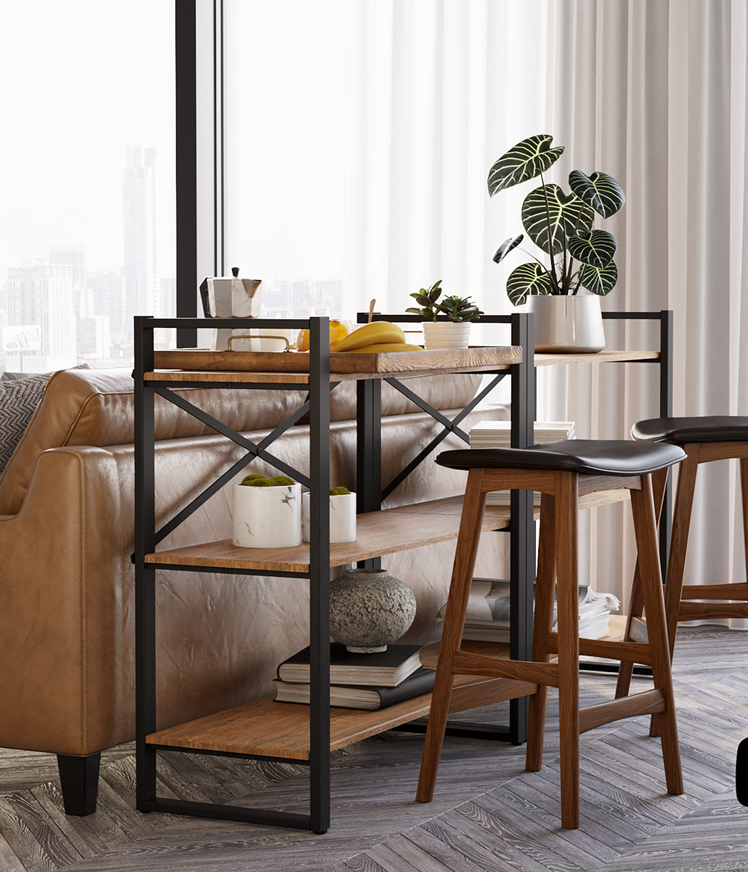 Металлический стеллаж «Хардвиг» — это идеальное решение для тех, кто ценит стиль и функциональность. Выполненный в современном стиле лофт, он станет не только эффектным акцентом в вашем интерьере, но и надежным помощником в организации хранения. В гостиной или спальне этот стеллаж прекрасно подчеркнет вашу индивидуальность, позволяя разместить на нем изысканные предметы декора, часы или любимые фотографии. А в прихожей или кухне он станет практичным решением для хранения вещей, которые всегда должны быть под рукой.