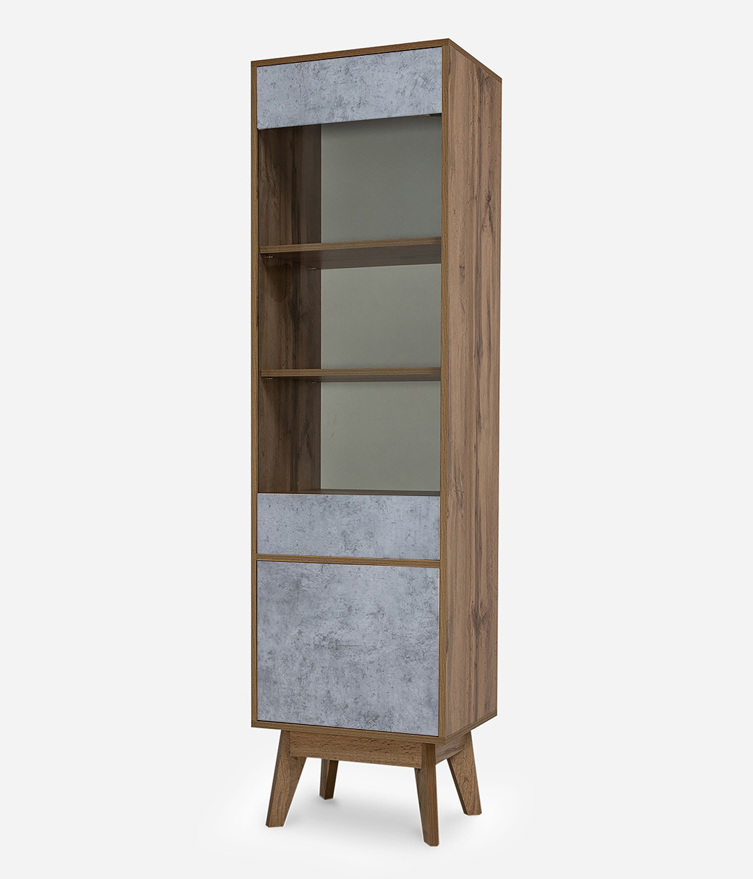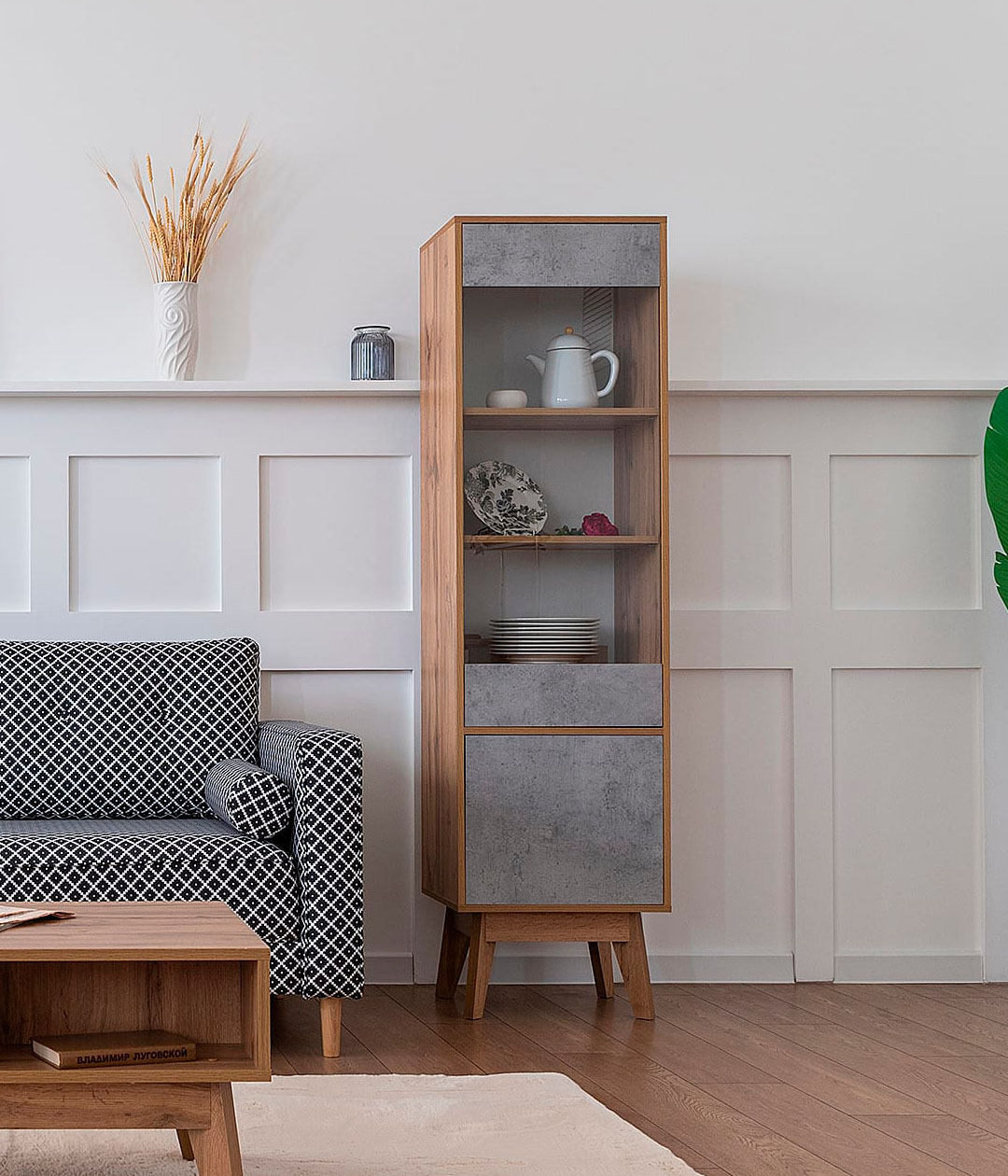 В дизайне витрины Хелен нет ничего лишнего. Такая мебель привлекает внимание своей лаконичностью, позволяющей легко вписать модель в любые современные интерьеры. Особенность шкафа — наличие как закрытых, так и открытых полок.