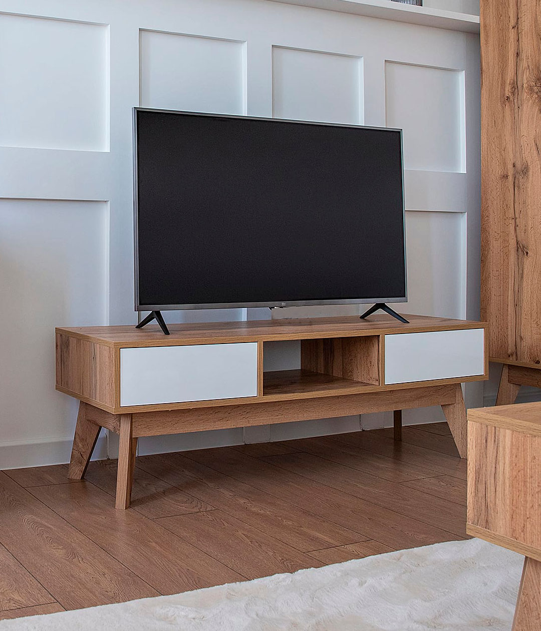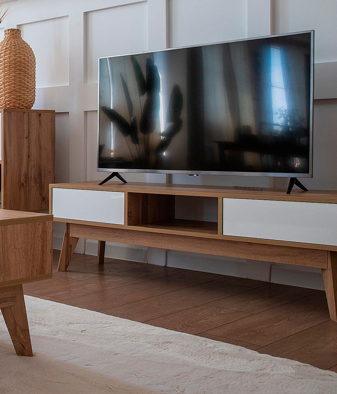 Для просторных гостиных в коллекции мебели Хелен предусмотрена масса привлекательных моделей. Одна из них – тумба, оснащенная боковыми закрытыми полками, которые делают её по-настоящему функциональной. Габариты тумбы позволяют использовать изделие для размещения самых разнообразных предметов, в том числе для скрытого хранения книг и техники.