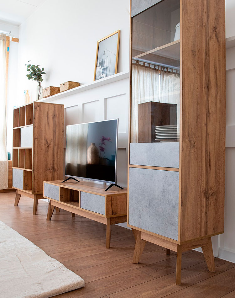 Для просторных гостиных в коллекции мебели Хелен предусмотрена масса привлекательных моделей. Одна из них – тумба, оснащенная боковыми закрытыми полками, которые делают её по-настоящему функциональной. Габариты тумбы позволяют использовать изделие для размещения самых разнообразных предметов, в том числе для скрытого хранения книг и техники.