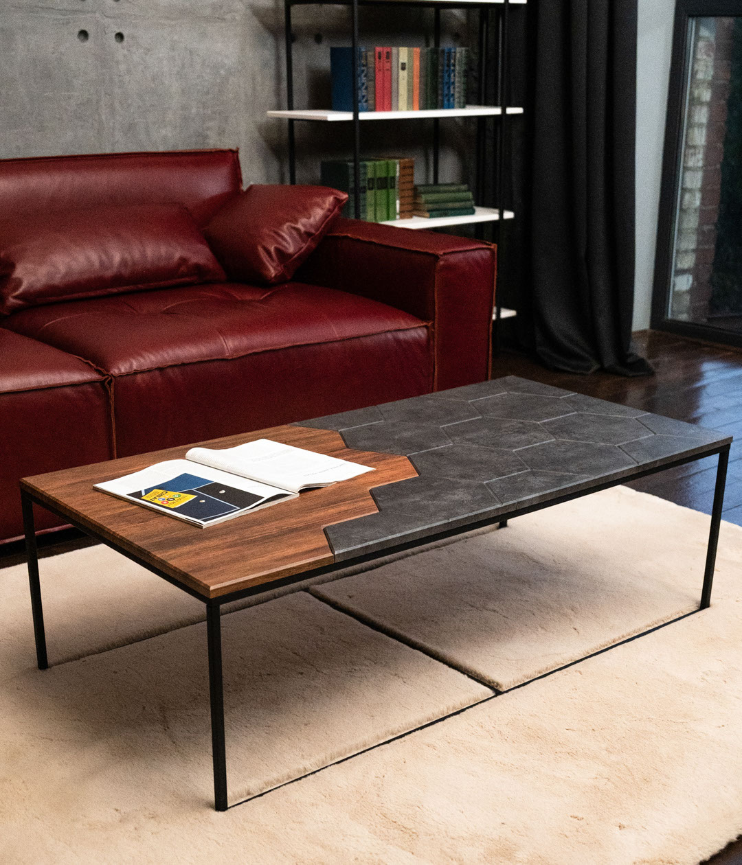 Выбирая стол для гостиной, следует обратить внимание на современный стиль лофт. Благодаря стильному столу «Китч» интерьер комнаты будет смотреться оригинально и современно.
