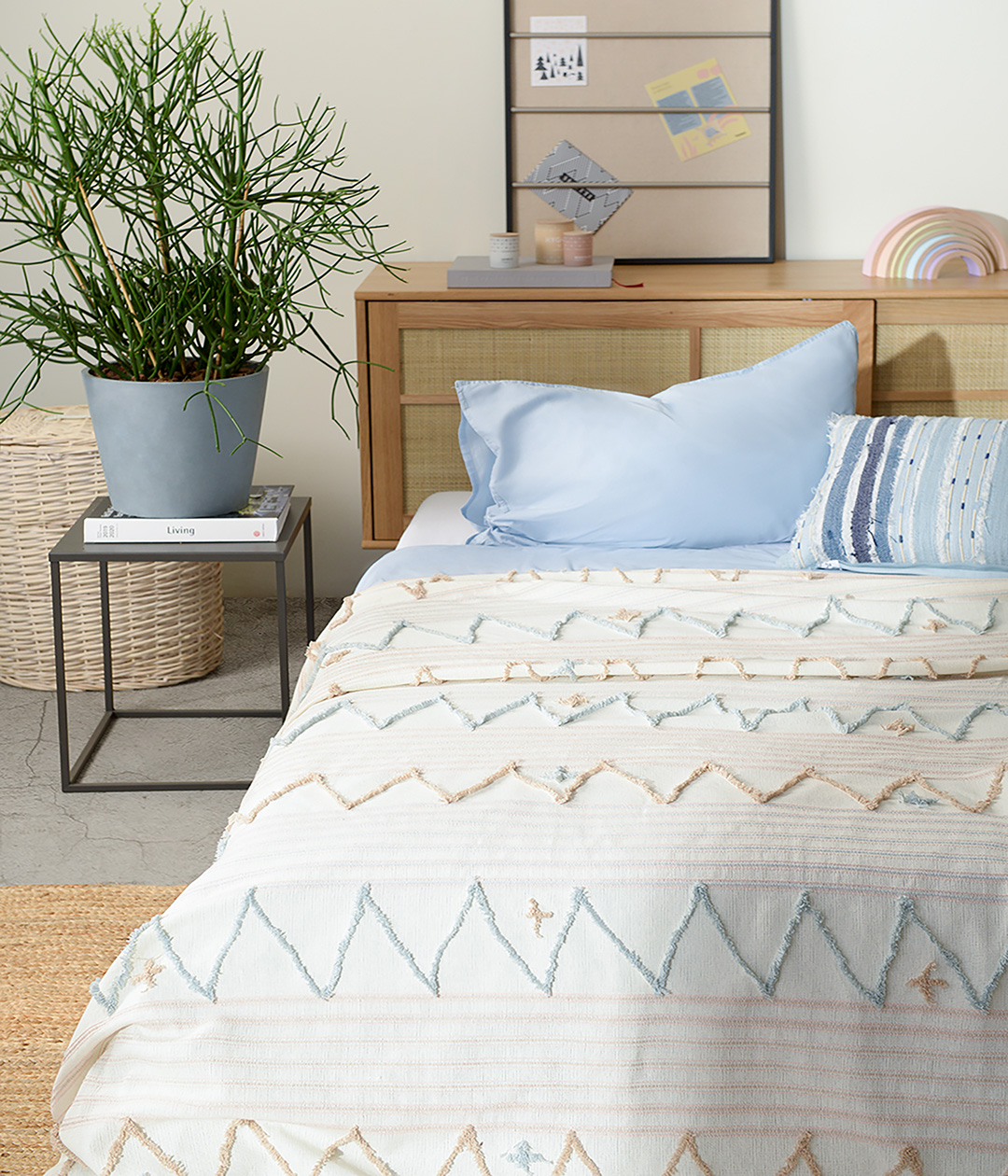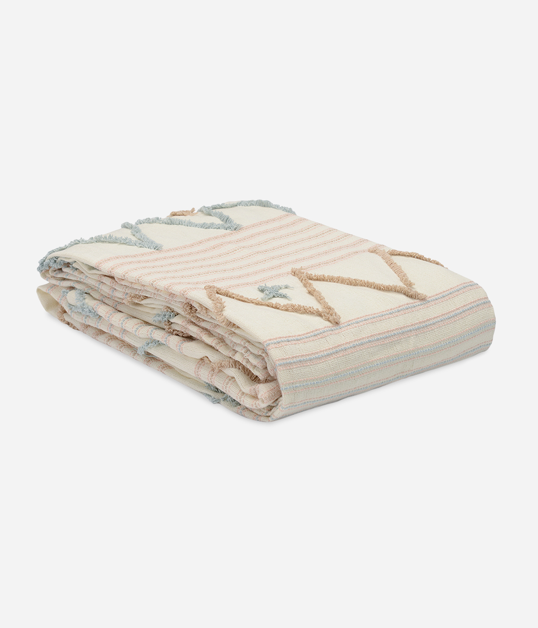 Покрывало из хлопка коллекции Ethnic с объемной вышивкой и бахромой голубого цвета – это уникальный элемент декора в пространствах, оформленных в скандинавском или этно-стиле.