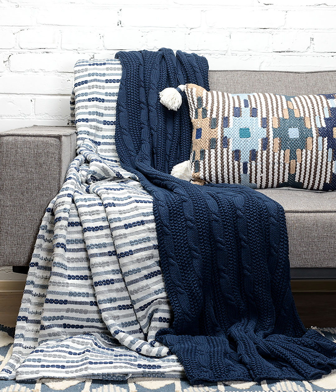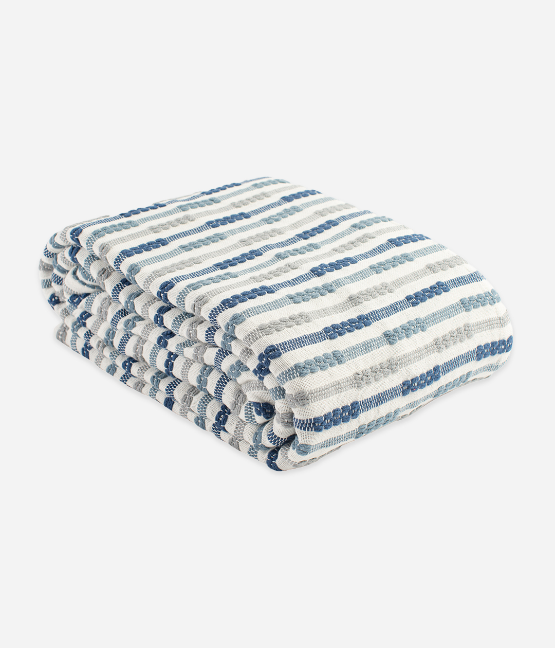 Хлопковое покрывало в полоску с объемным тканым рисунком из коллекции Ethnic станет уникальным элементом декора в помещениях, оформленных в скандинавском или этно-стиле.