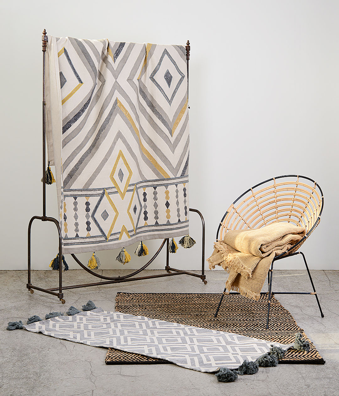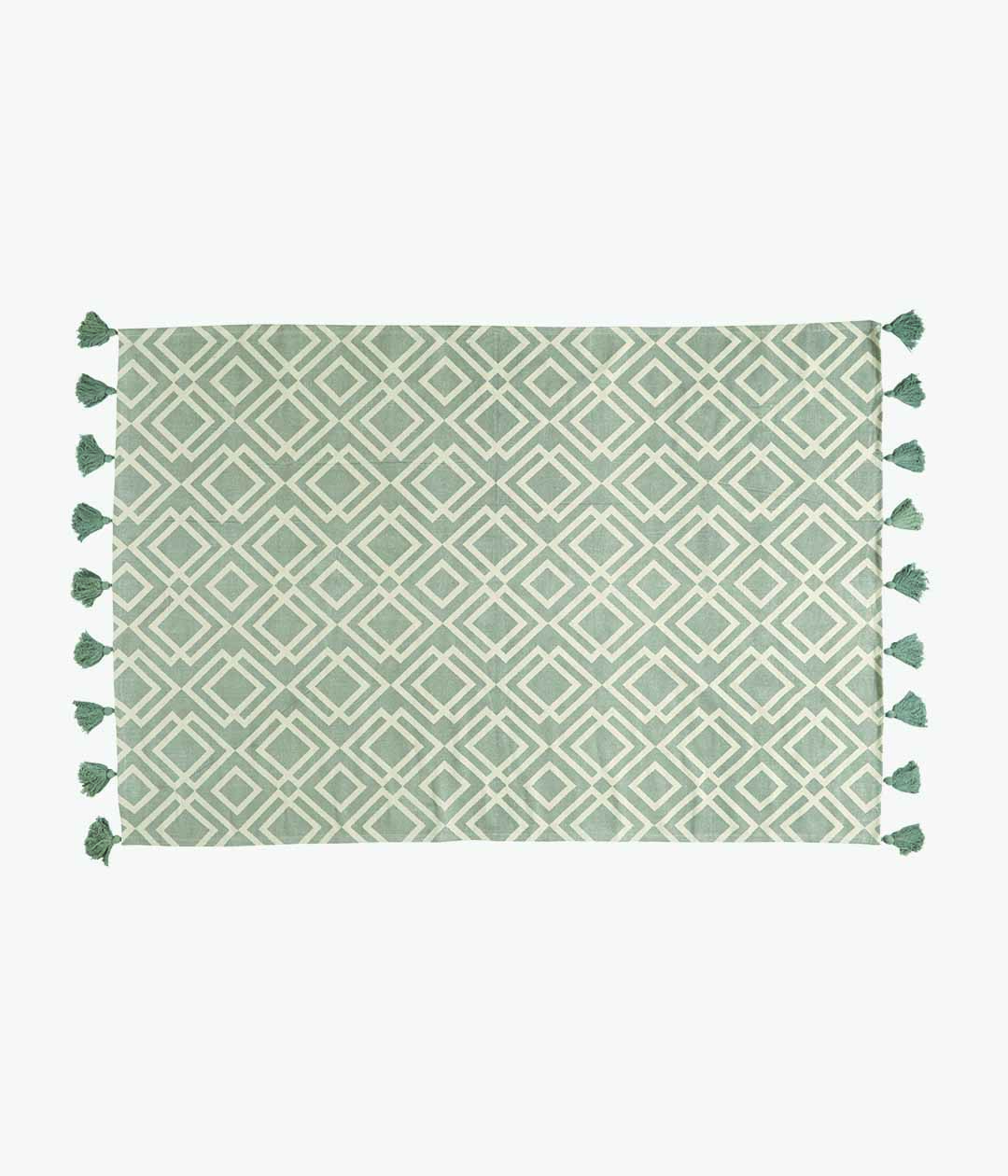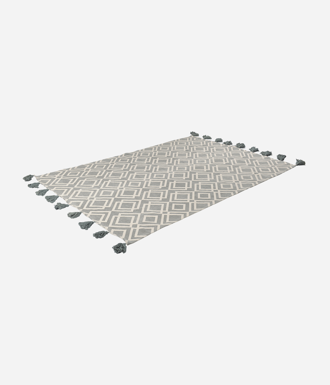 Ковер из хлопка с этническим узором Ромбы и кисточками из коллекции Ethnic универсальной расцветки впишется практически в любой интерьер и станет необычным акцентом. Оригинальное изделие, выполненное из натуральных материалов, будет уместно в гостиной или в спальне.