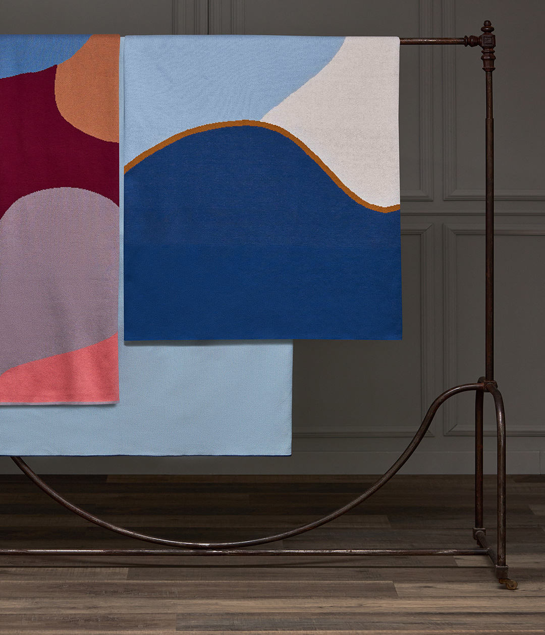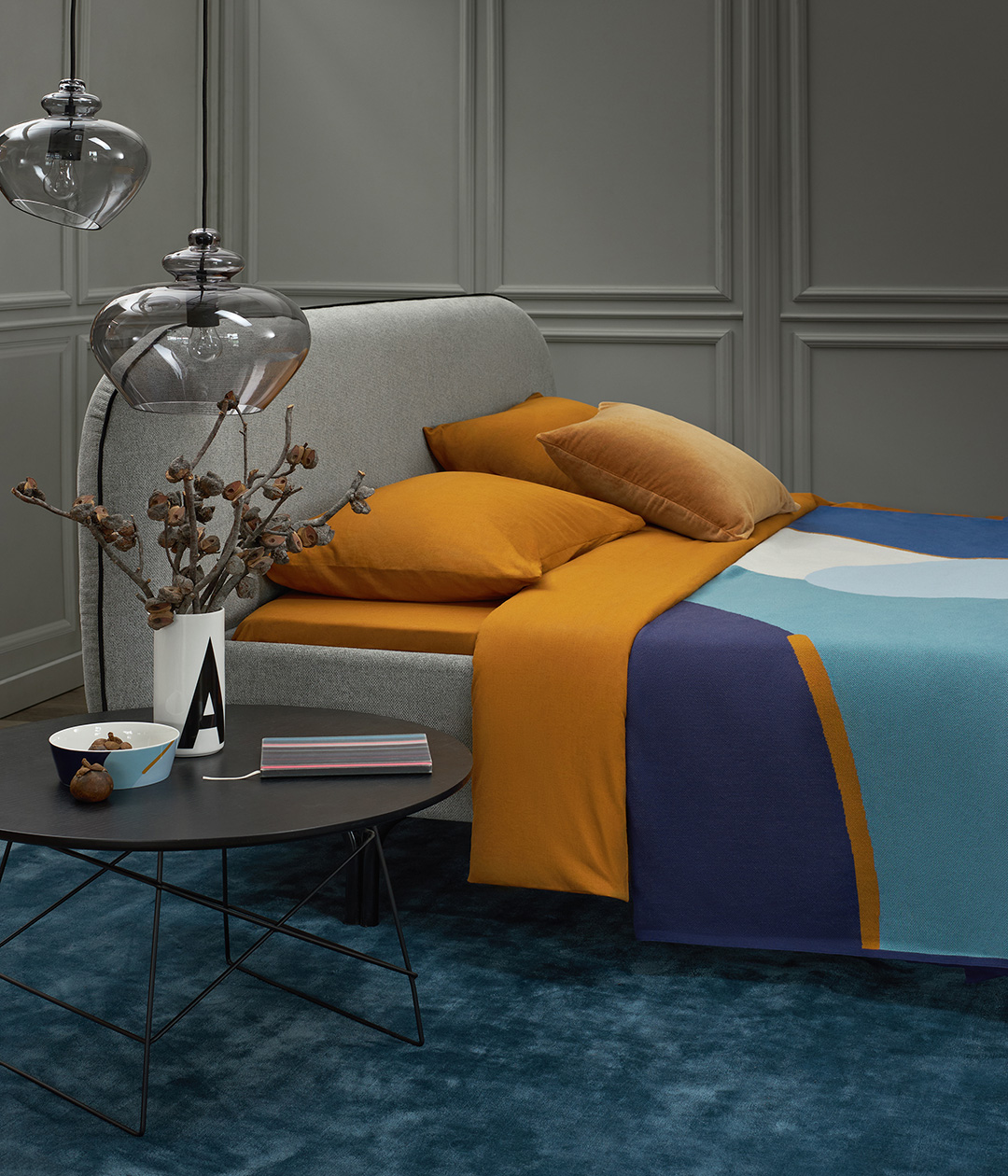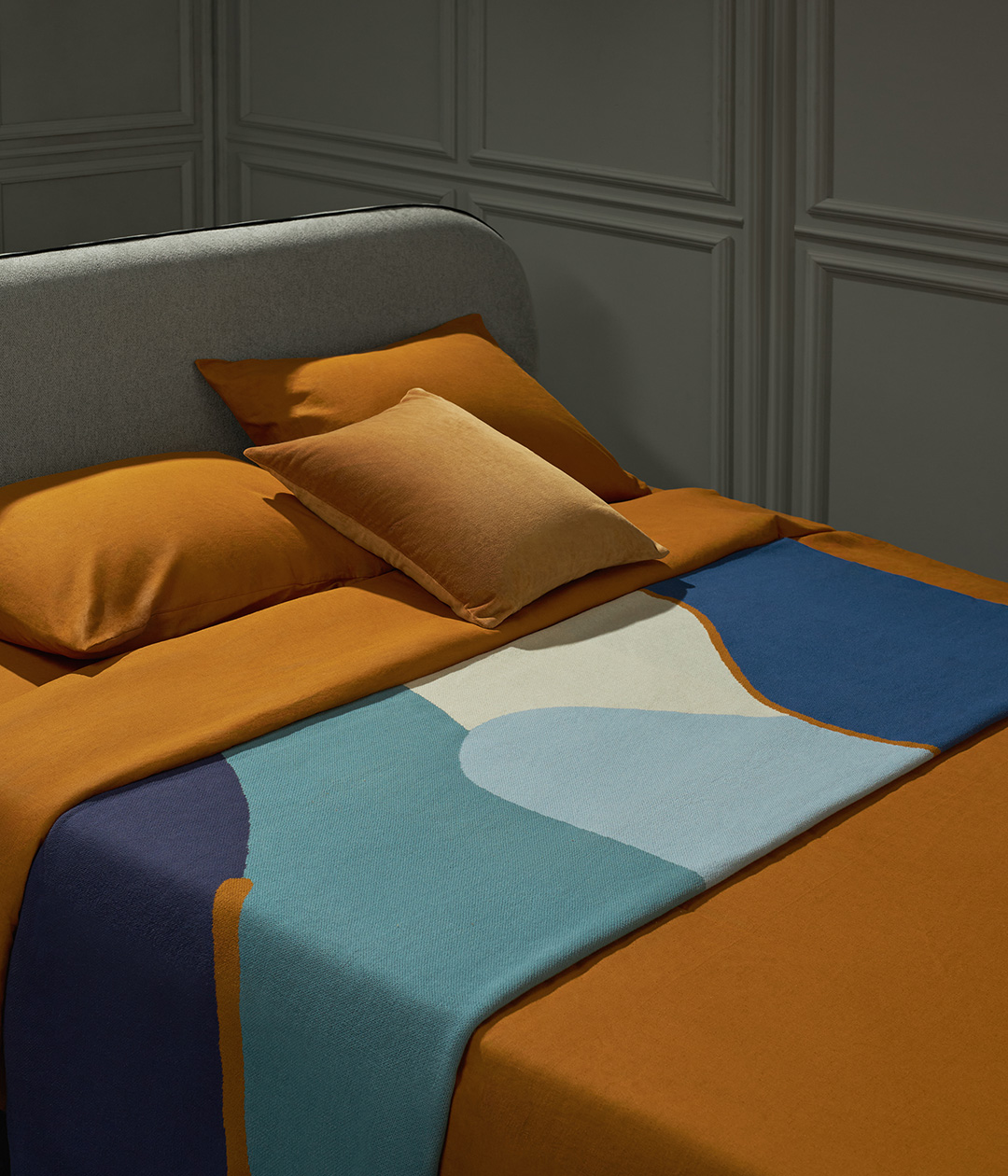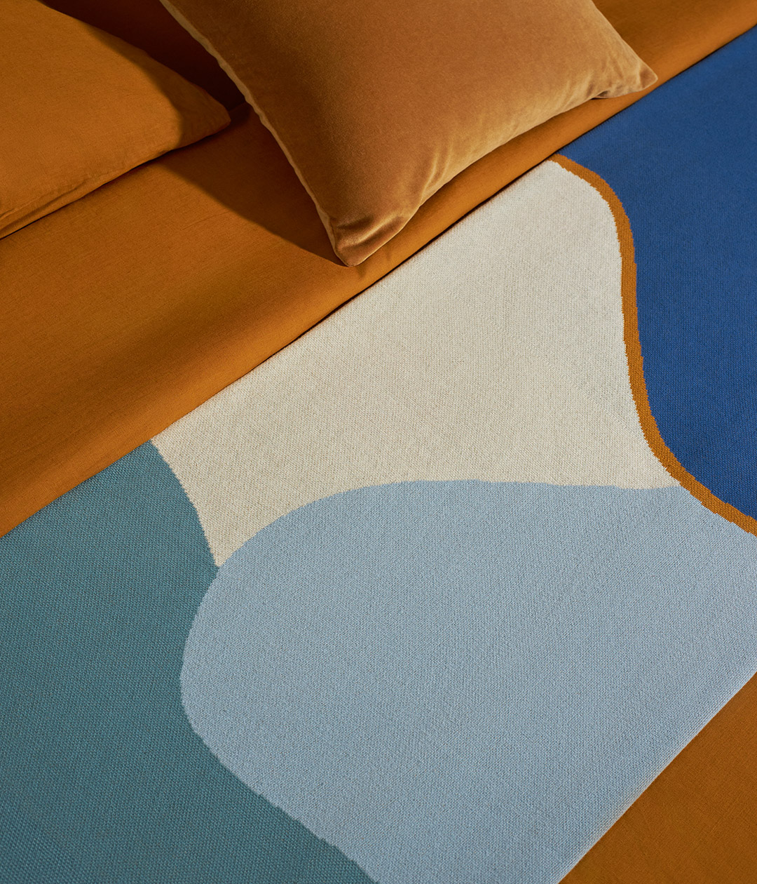 Плед из хлопка с авторским принтом синего цвета из коллекции Freak Fruit станет акцентным элементом в интерьере спальни или гостиной.