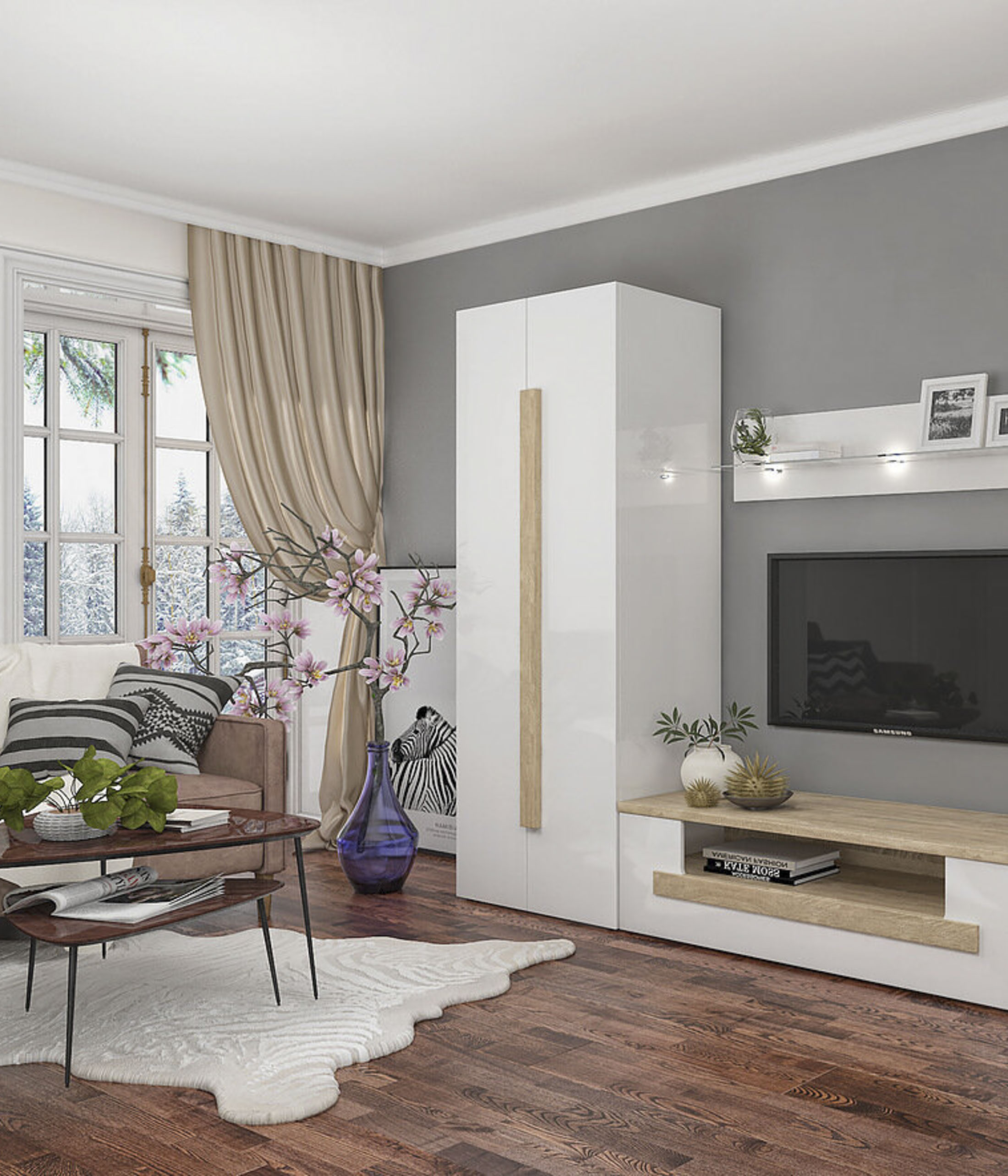 Распашной шкаф «Куба» для одежды украсит интерьер гостиной в стилях лофт, сканди, эко-минимализм. Яркая цветовая палитра и современная функциональность добавят в жилое помещение гармонии, уюта и комфорта. В составе стенки или отдельно шкаф обеспечит удобное хранение вашей одежды и аксессуаров.