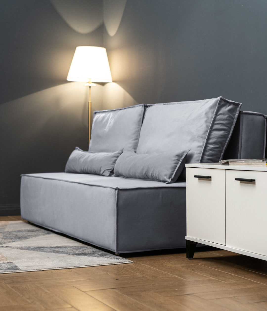Диван Куинс в стиле лофт в обивке из велюра привнесет современный акцент в ваш интерьер. Вывернутые швы добавляют оригинальности, а отсутствие подлокотников делает модель более компактной. Просторное спальное место идеально для отдыха и обеспечивает максимальный комфорт. Мягкая на ощупь велюровая ткань создает уют и тепло. Диван Куинс станет практичным решением для тех, кто ценит стиль и удобство.