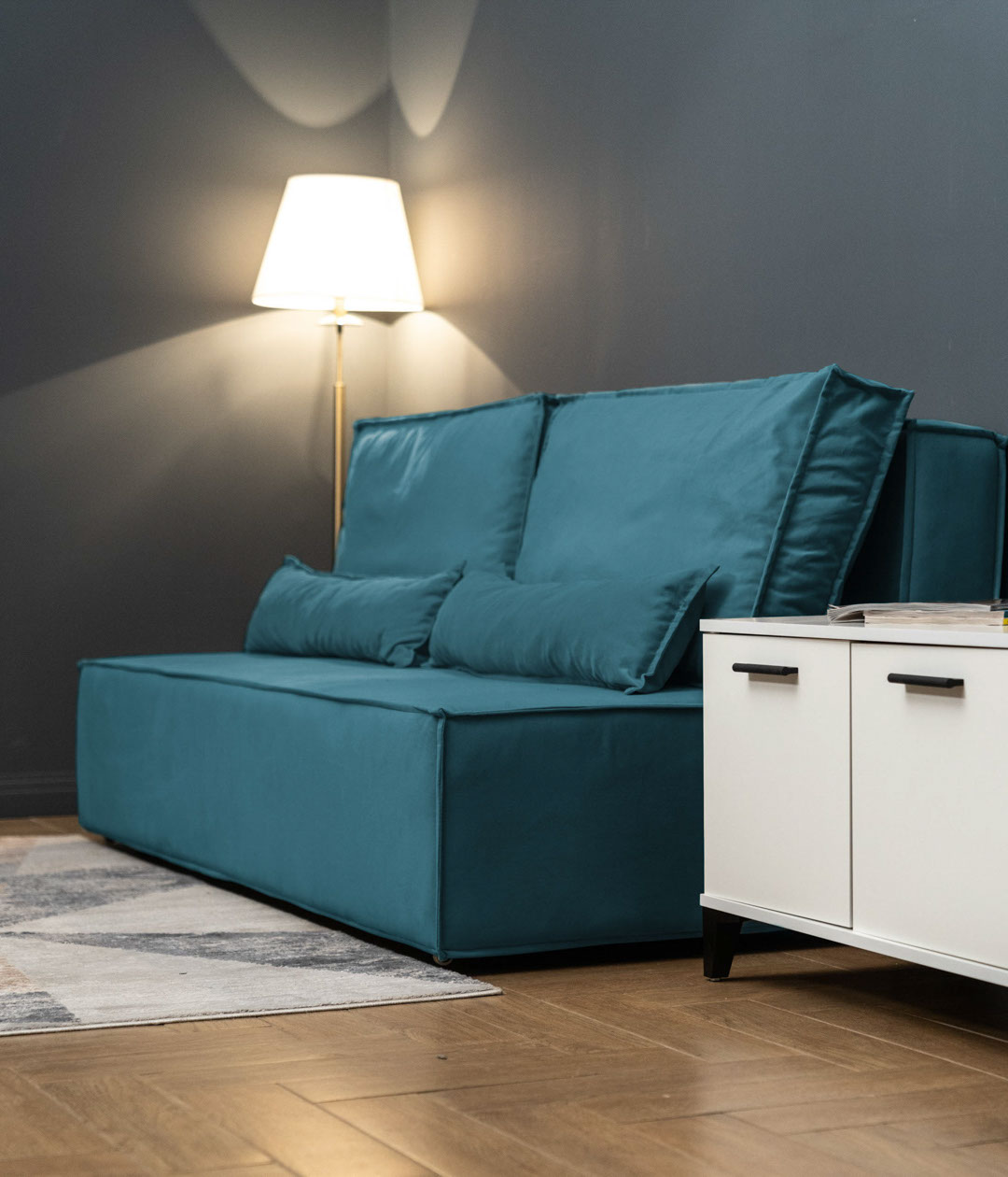 Диван Куинс в стиле лофт в обивке из велюра привнесет современный акцент в ваш интерьер. Вывернутые швы добавляют оригинальности, а отсутствие подлокотников делает модель более компактной. Просторное спальное место идеально для отдыха и обеспечивает максимальный комфорт. Мягкая на ощупь велюровая ткань создает уют и тепло. Диван Куинс станет практичным решением для тех, кто ценит стиль и удобство.