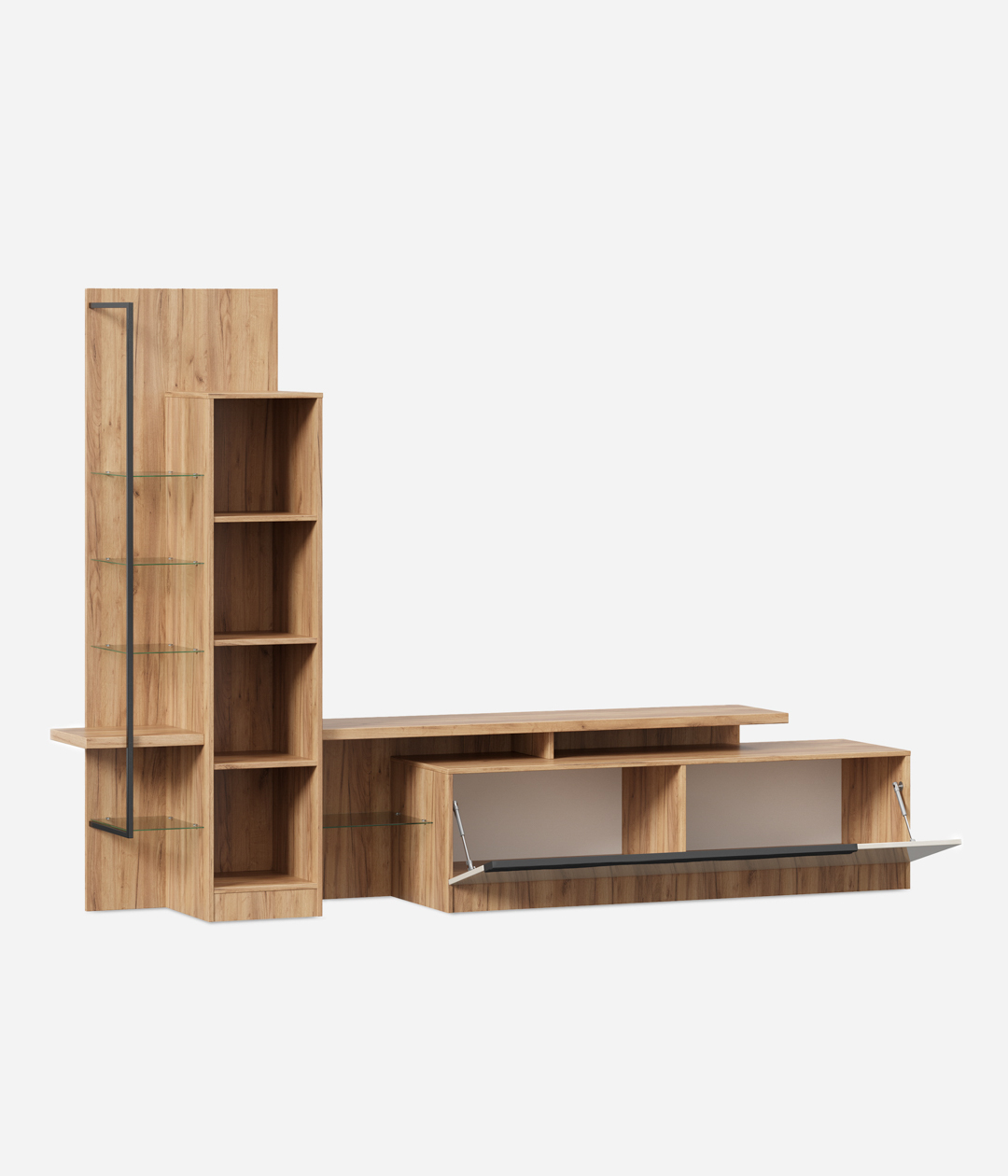 Удобная и функциональная тумба Кёльн поможет разместить всю необходимую технику и аппаратуру для ТВ зоны и обустроить комфортную рабочею зону. Большое количество отрытых и закрытых полок помогут в поддержание порядка.