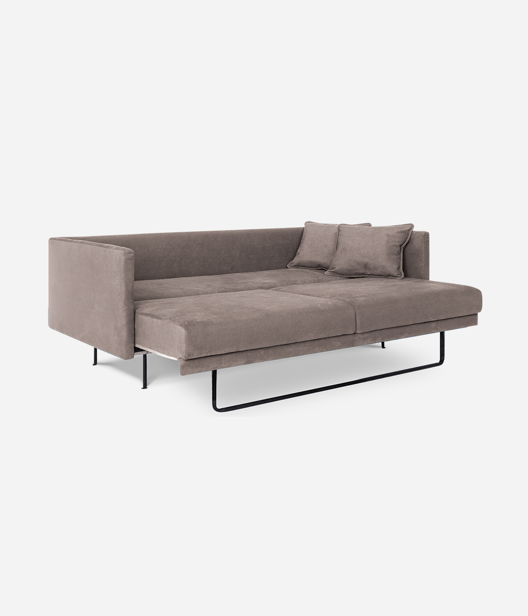 Диван Ланкастер словно парит в невесомости, благодаря тонким и стильным ножкам из сверхпрочной закалённой стали. Этот броский элемент создает уникальный симбиоз воздушности и современного дизайна. В ночное время диван легко трансформируется в просторную кровать для двоих, а днем превращает вашу гостиную в уютную лаунж-зону.