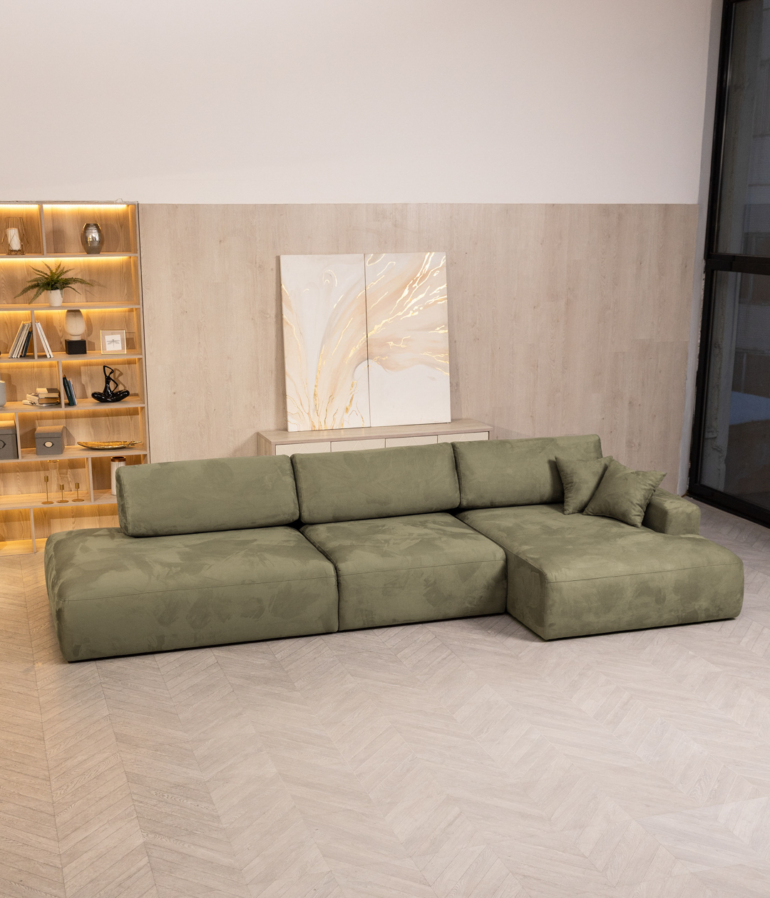 Роскошный угловой диван Ларедо в стиле Лофт создан для тех, кто ценит комфорт и стиль. Нежный на ощупь нубук высочайшего качества, блок независимых пружин и стильный минималистичный дизайн делают диван Ларедо настоящим украшением современного интерьера.