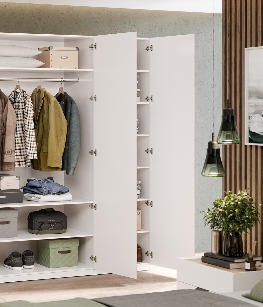Шкаф «Лайт» – это классический атрибут современной спальни. Компактный модуль с полками имеет отличительную особенность в виде встроенной в профиль фасада ручки. Благодаря удобству формы и классической расцветке подходит для интерьеров в стилях современный, скандинавский, неоклассика.